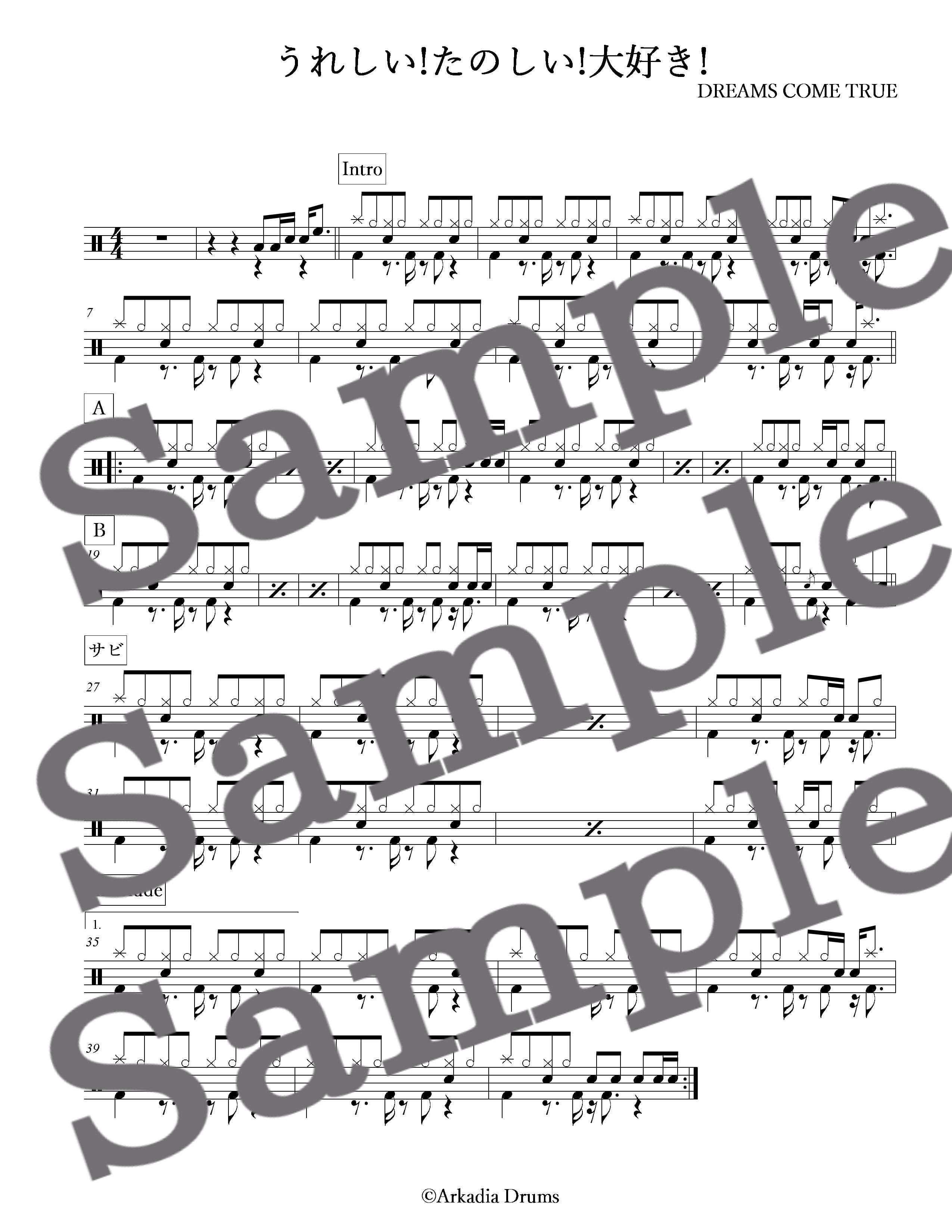 うれしい!たのしい!大好き!(DREAMS COME TRUE)のドラム楽譜です。
