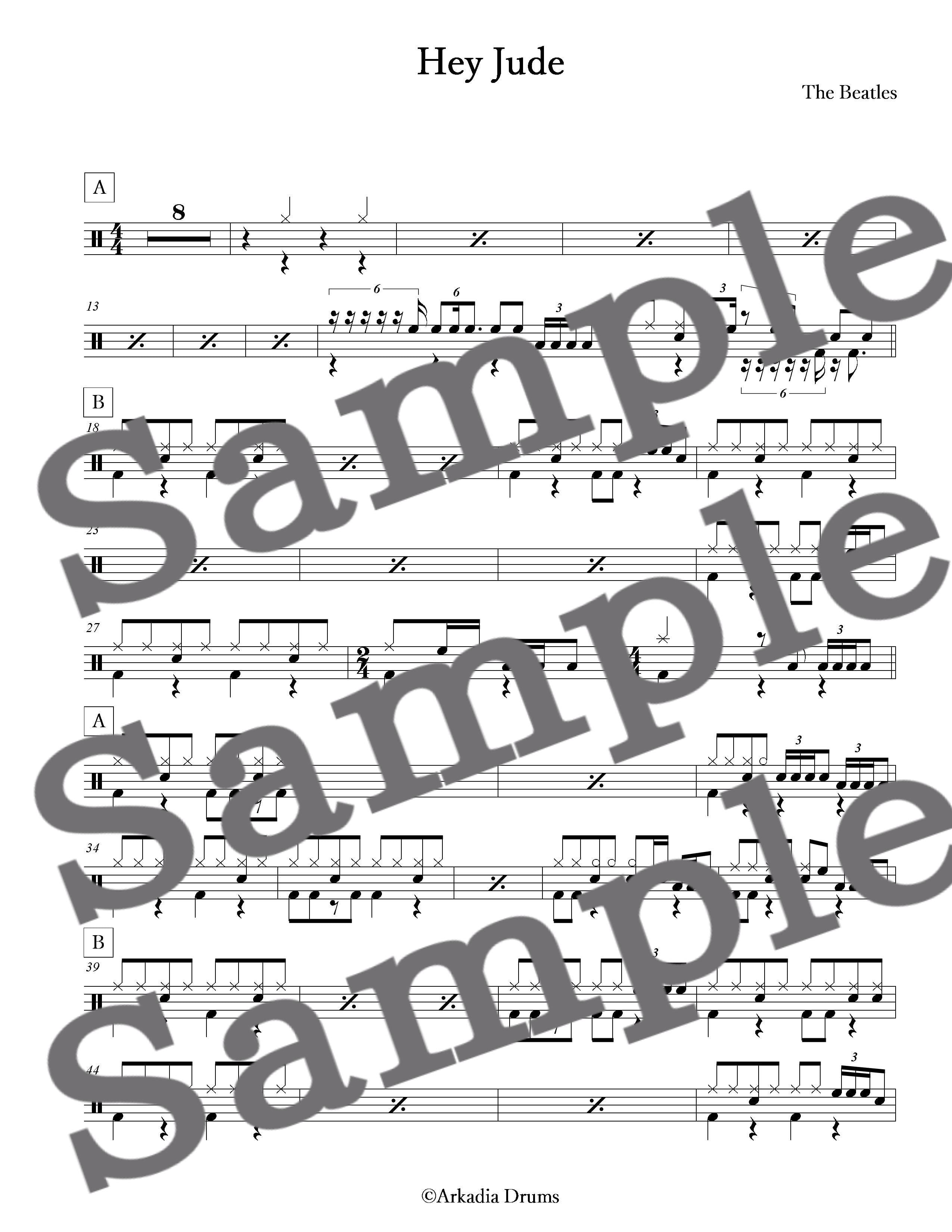 Hey Jude(The Beatles)のドラム楽譜です。