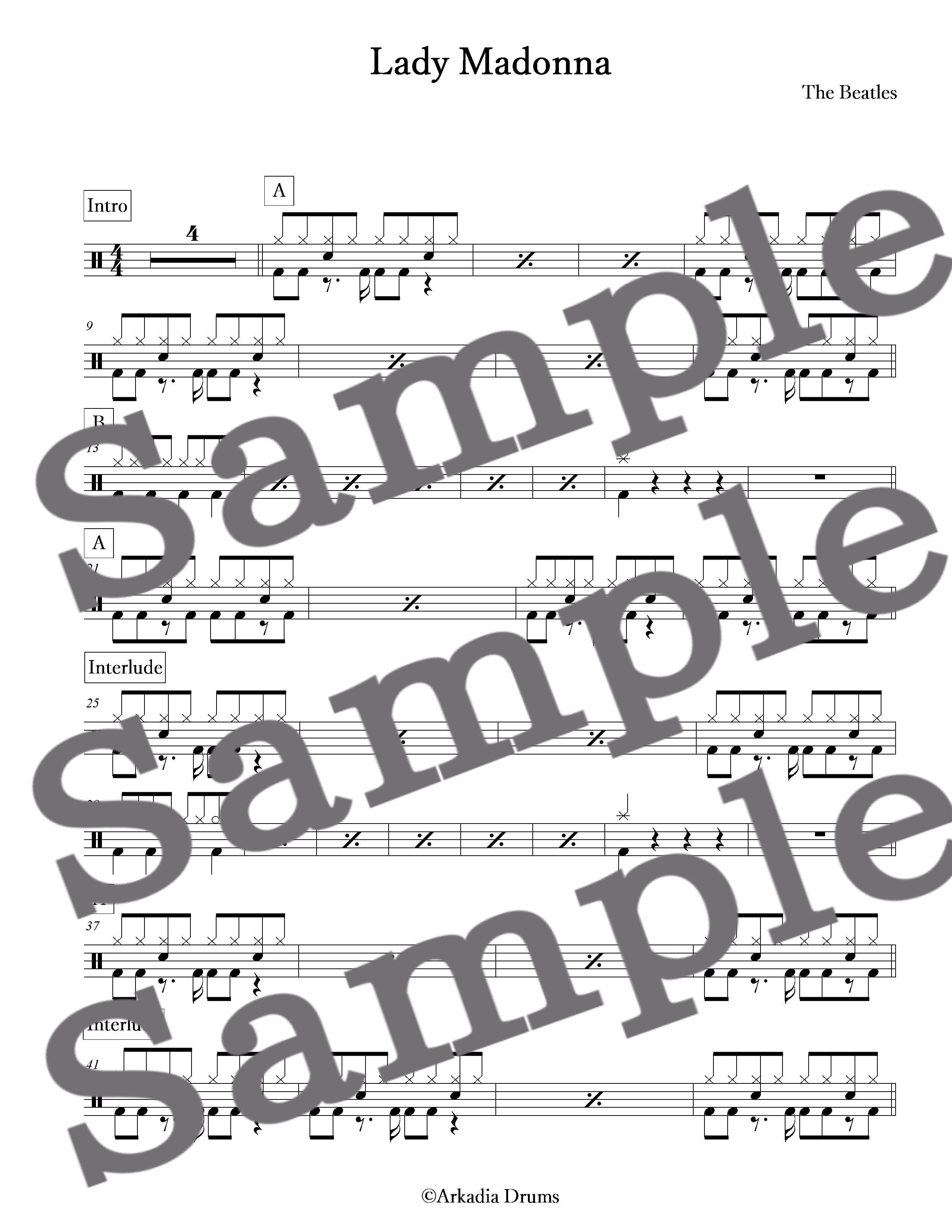 Lady Madonna(The Beatles)のドラム楽譜です。