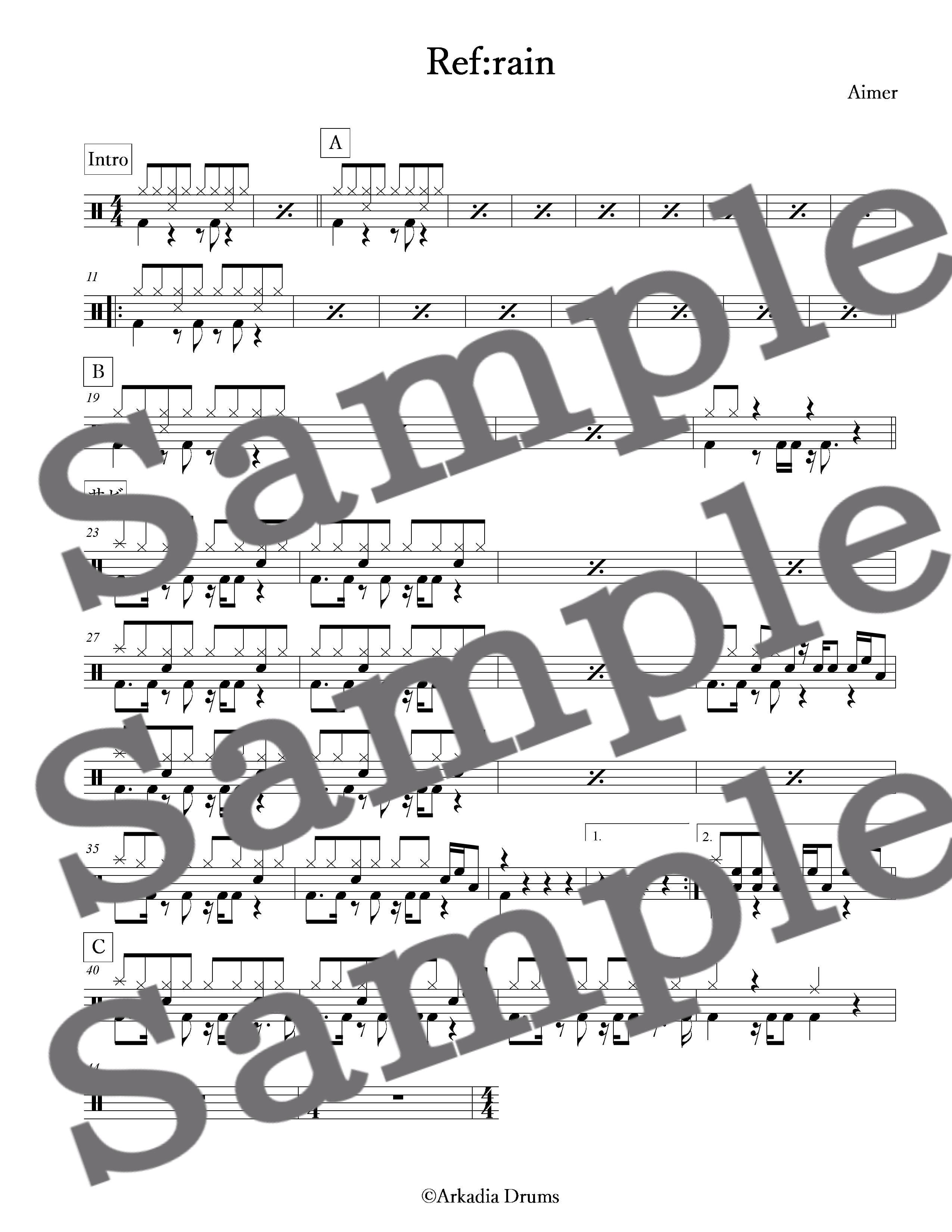 ドラムのみの楽譜であること、また大きめのセクションマークを配置しているので、演奏中でも迷いにくいのが特徴です。