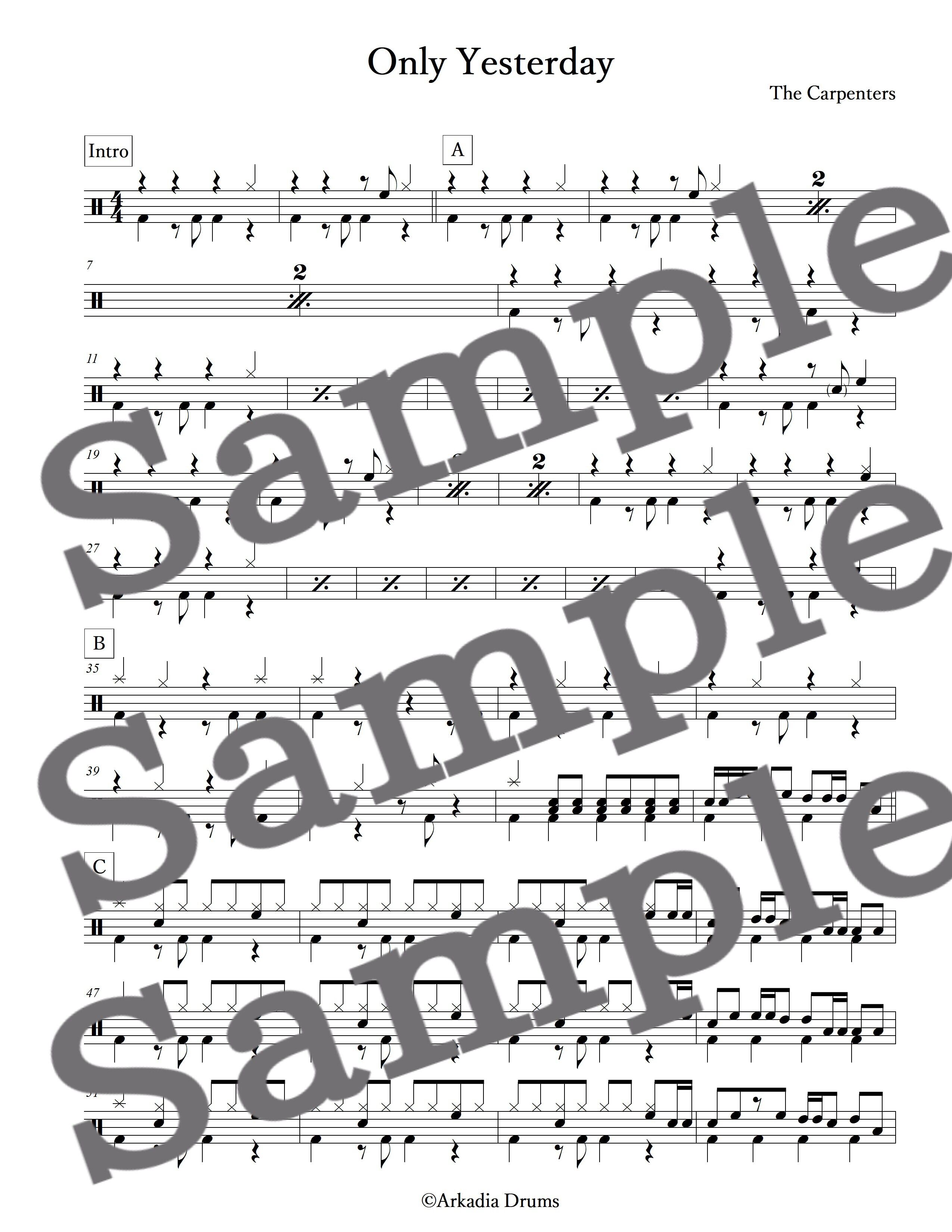 Only Yesterday(The Carpenters)のドラム楽譜です。