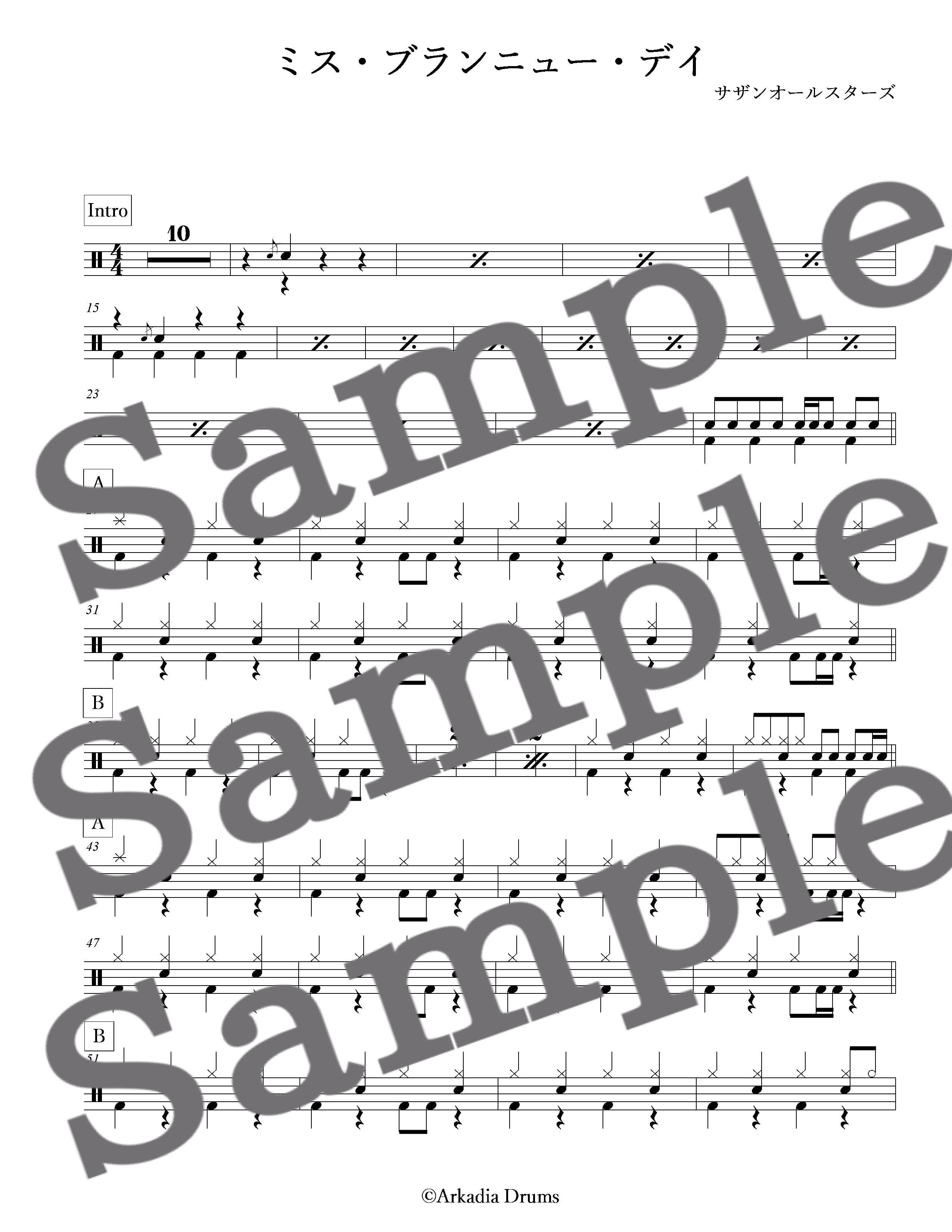 ミス・ブランニュー・デイ(サザンオールスターズ)のドラム楽譜です。
