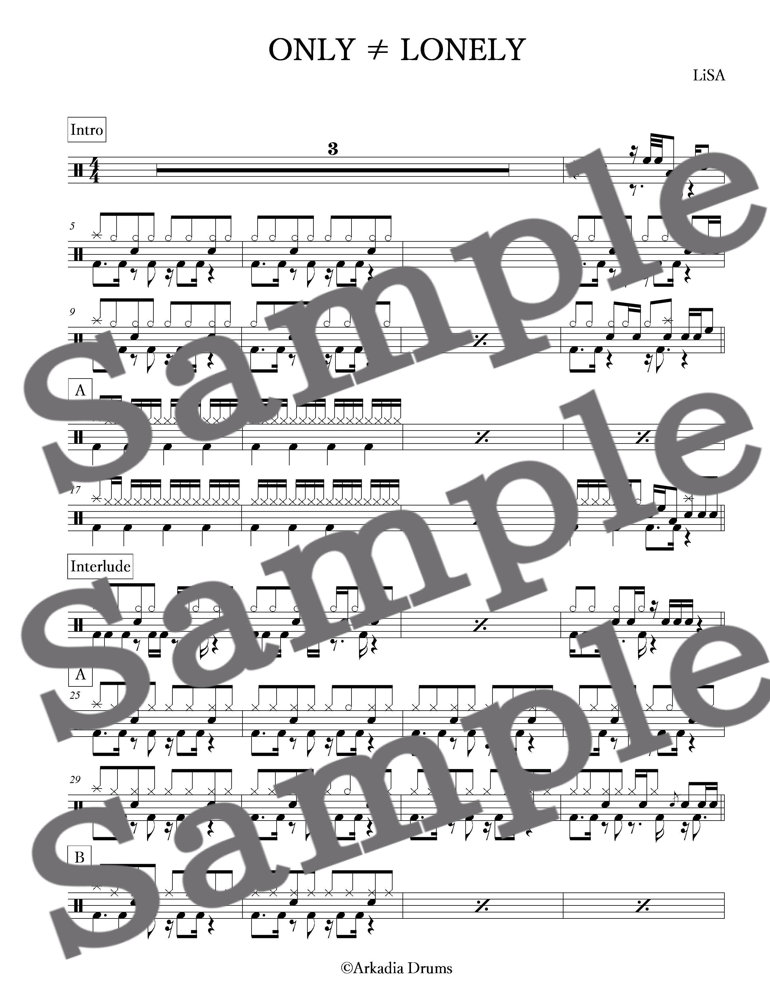 ONLY ≠ LONELY(LiSA)のドラム楽譜です。