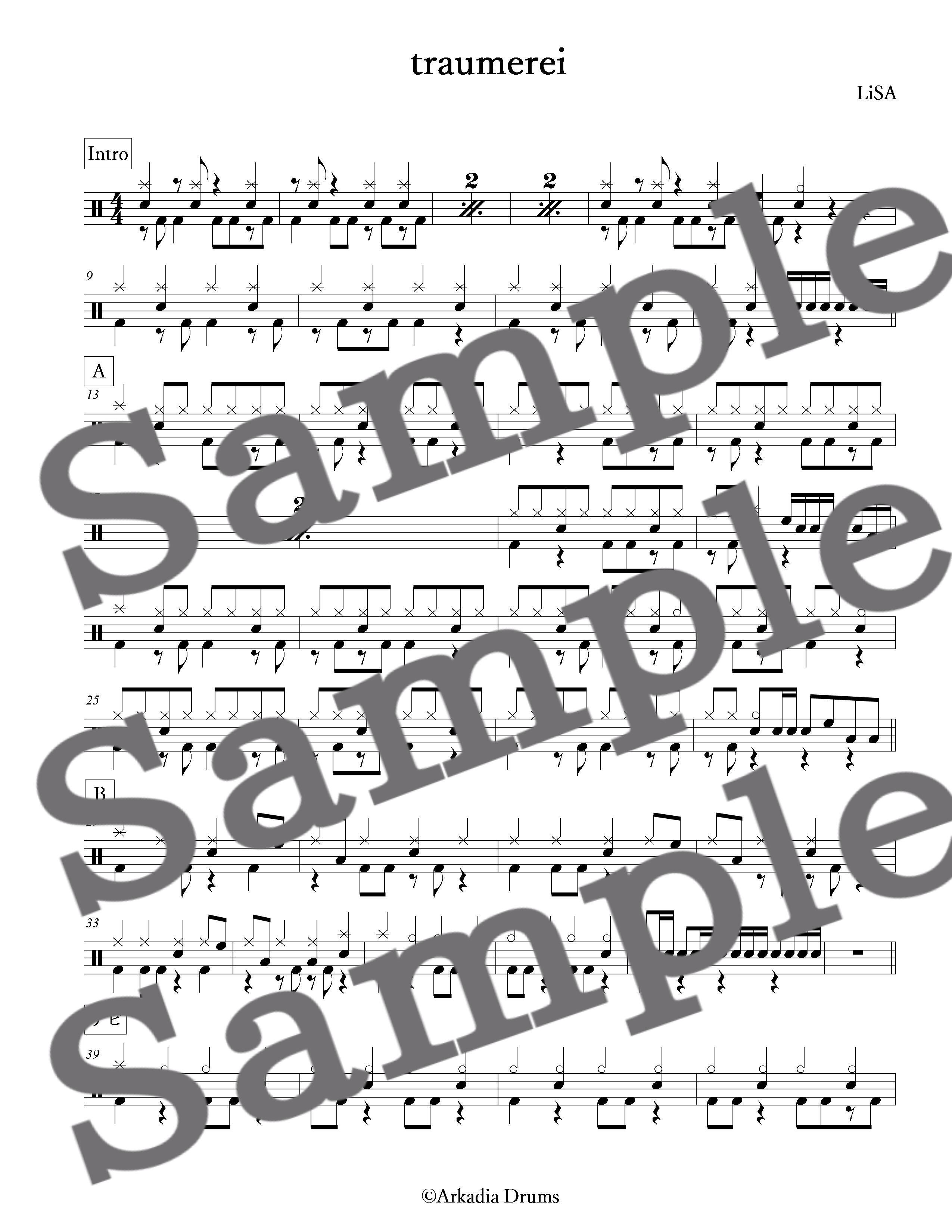 traumerei(LiSA)のドラム楽譜です。