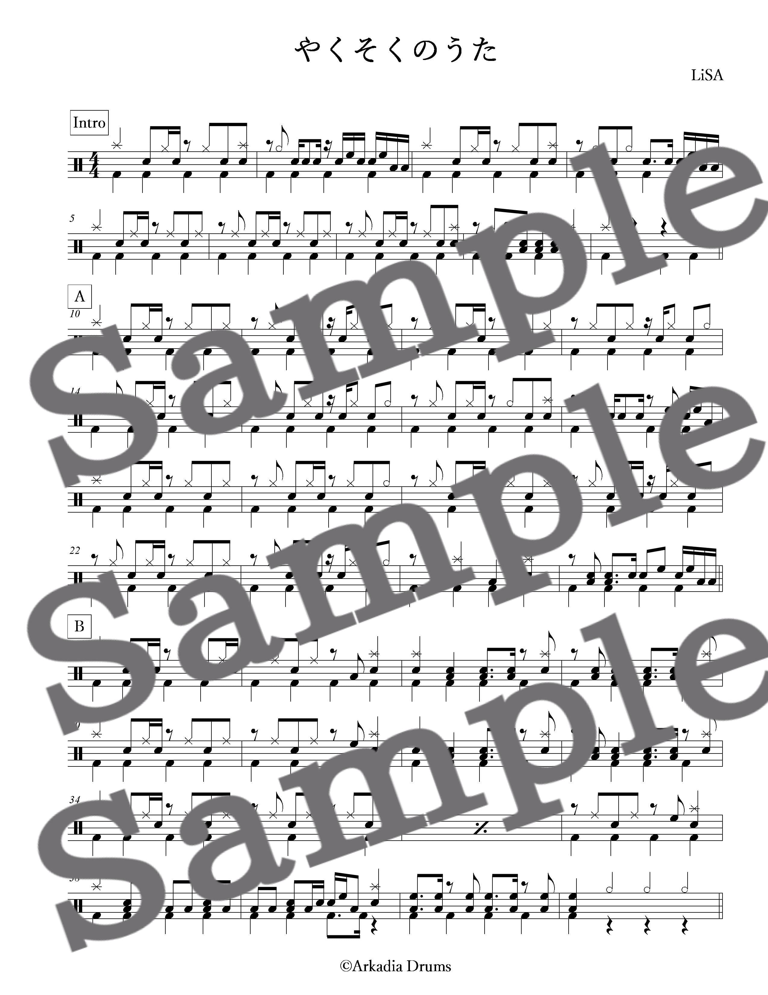 ドラムのみの楽譜であること、また大きめのセクションマークを配置しているので、演奏中でも迷いにくいのが特徴です。