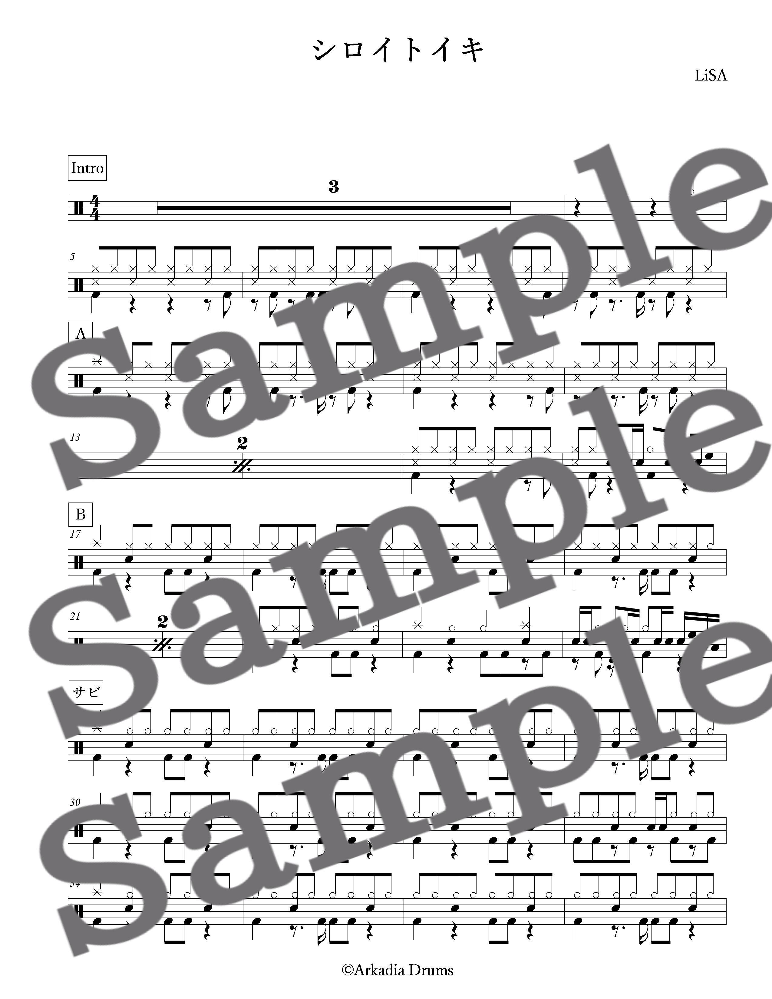 ドラムのみの楽譜であること、また大きめのセクションマークを配置しているので、演奏中でも迷いにくいのが特徴です。