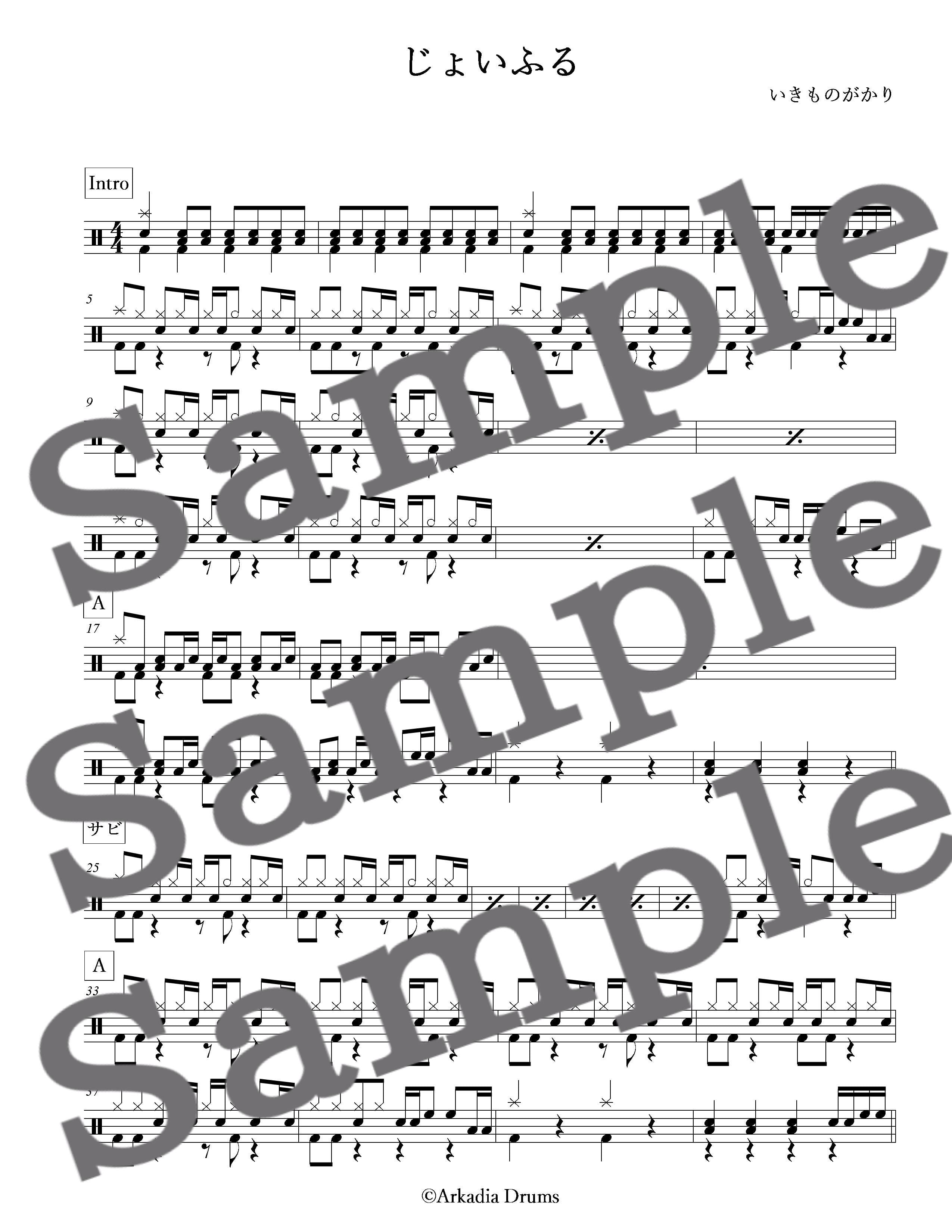 ドラムのみの楽譜であること、また大きめのセクションマークを配置しているので、演奏中でも迷いにくいのが特徴です。