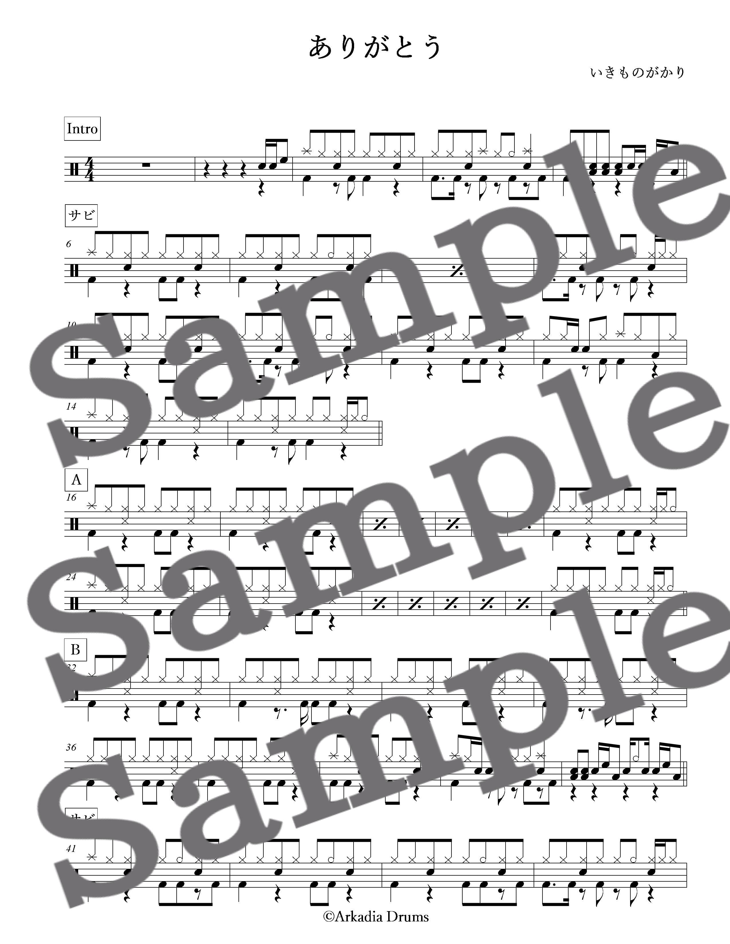 ドラムのみの楽譜であること、また大きめのセクションマークを配置しているので、演奏中でも迷いにくいのが特徴です。
