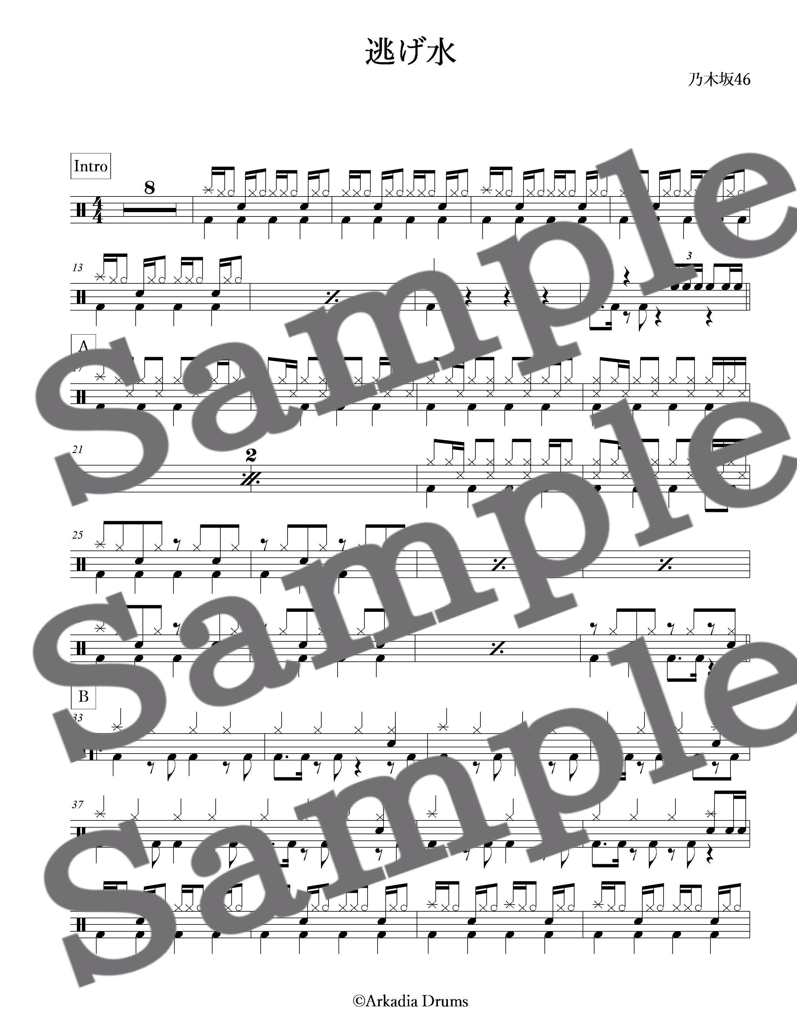 逃げ水(乃木坂46)のドラム楽譜です。