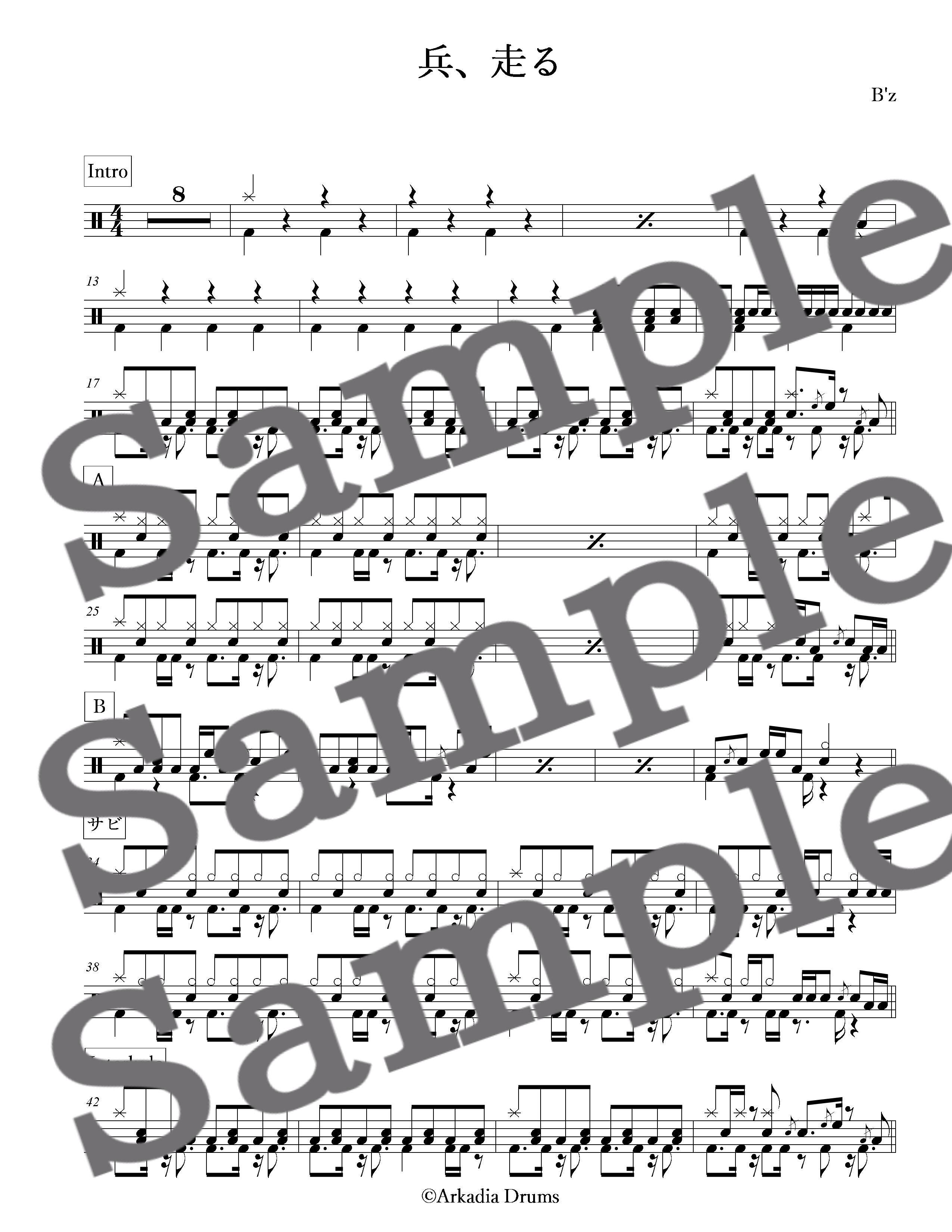 兵、走る(B'z)のドラム楽譜です。