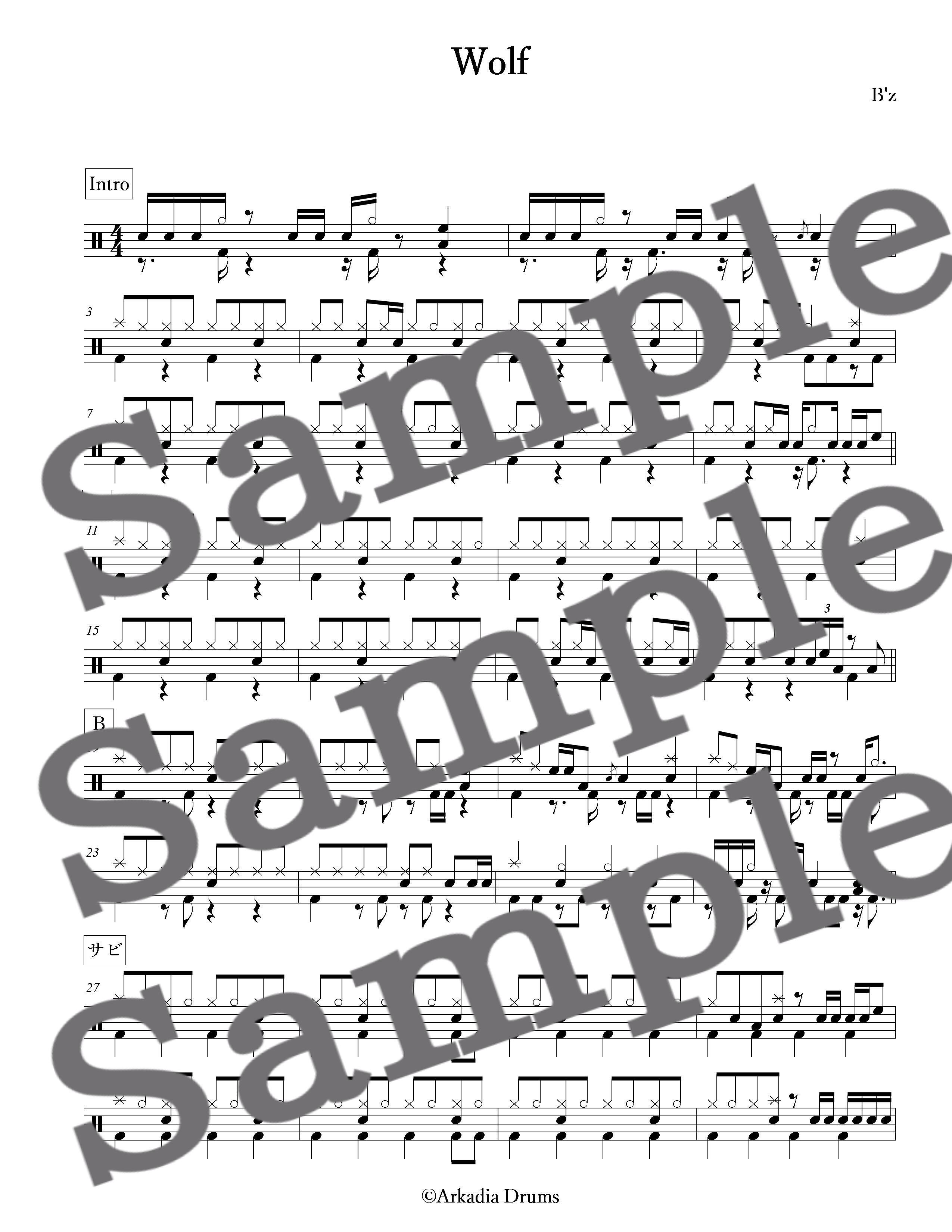 ドラムのみの楽譜であること、また大きめのセクションマークを配置しているので、演奏中でも迷いにくいのが特徴です。