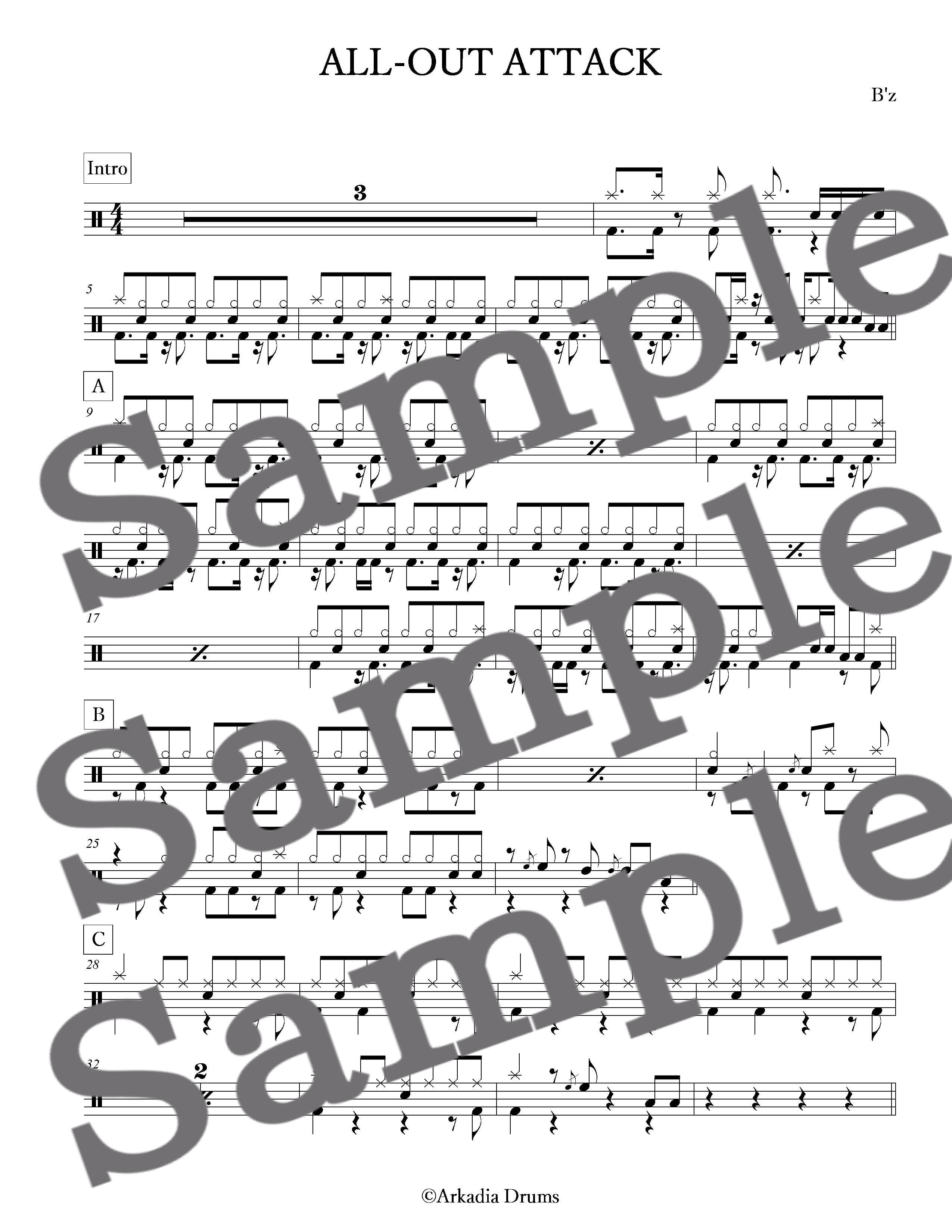 ALL-OUT ATTACK(B'z)のドラム楽譜です。