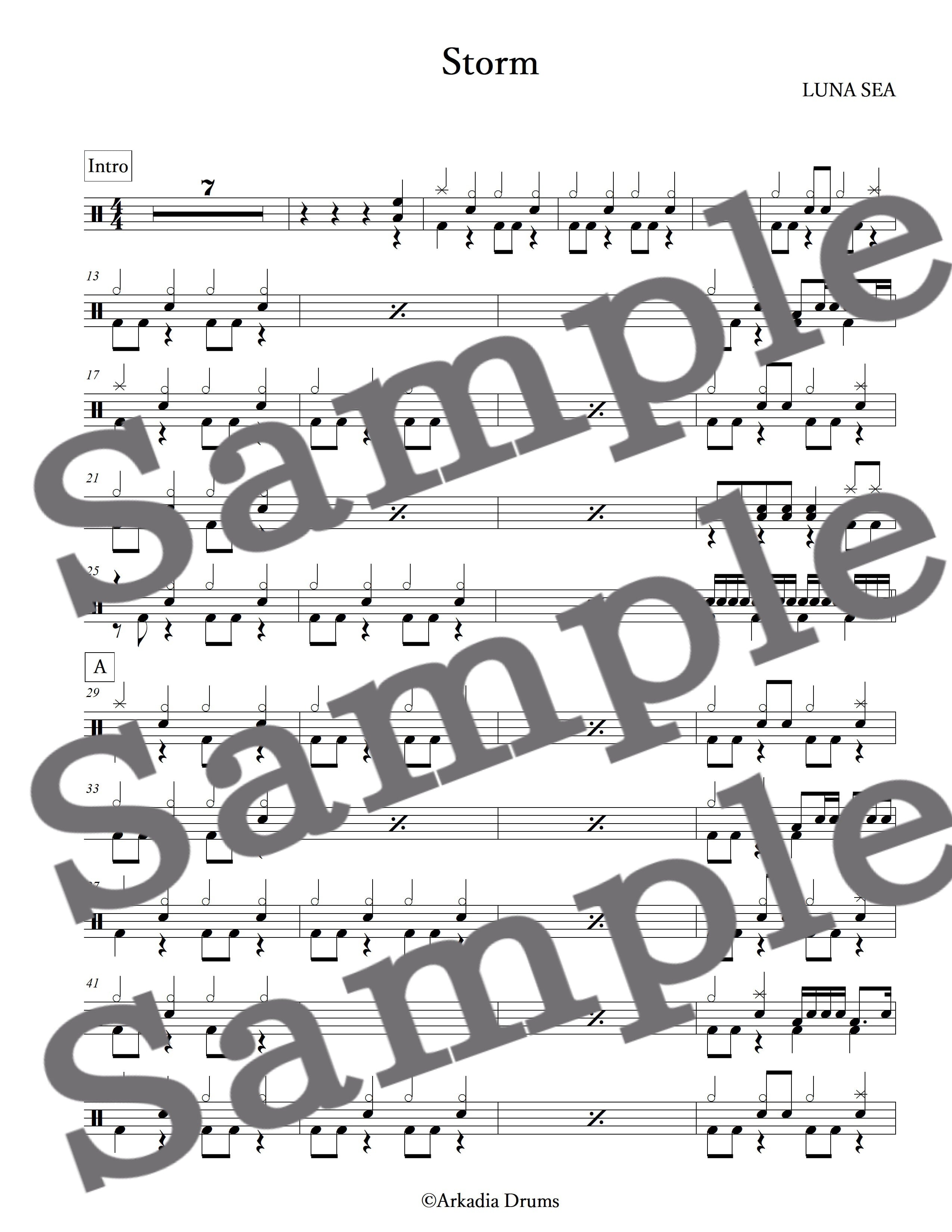 ドラムのみの楽譜であること、また大きめのセクションマークを配置しているので、演奏中でも迷いにくいのが特徴です。
