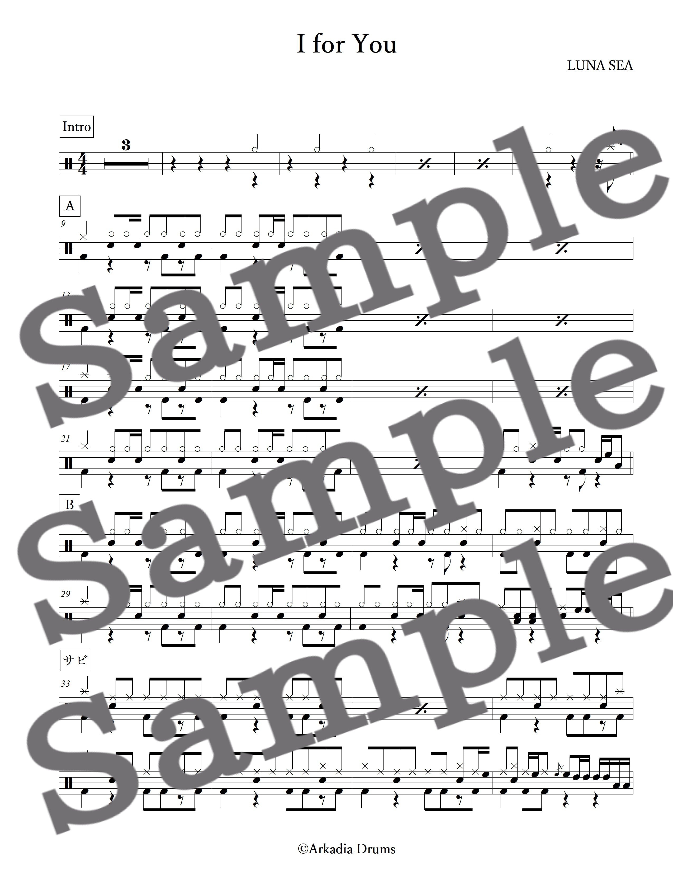 ドラムのみの楽譜であること、また大きめのセクションマークを配置しているので、演奏中でも迷いにくいのが特徴です。