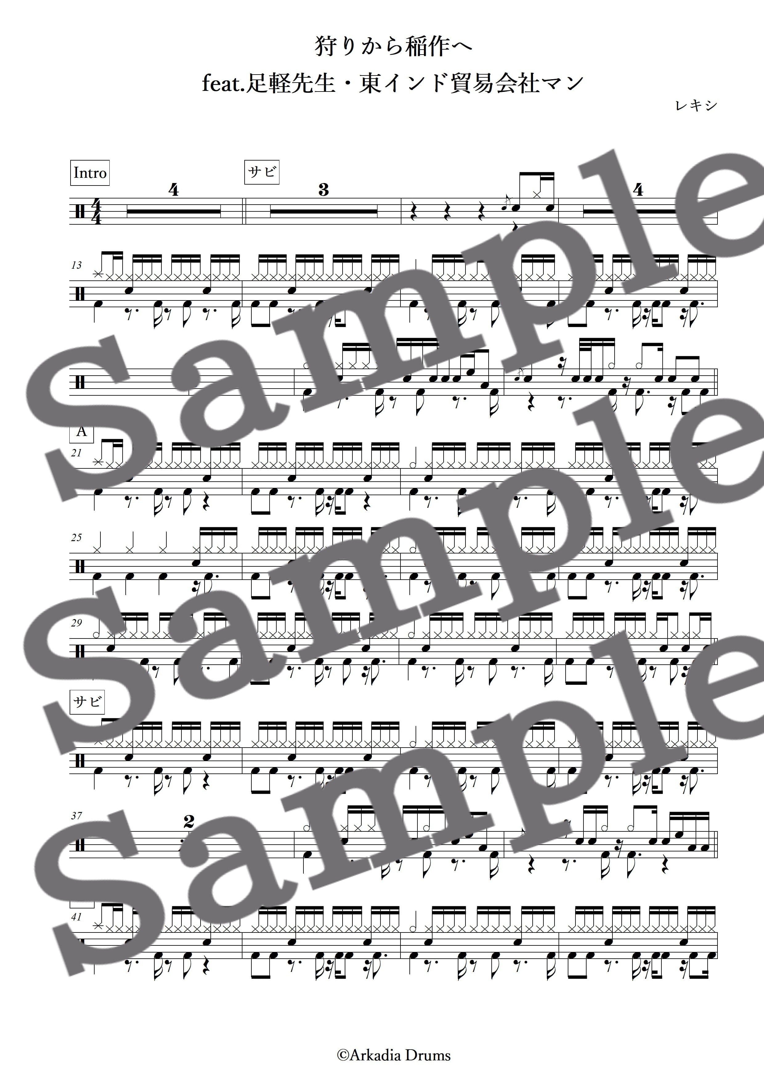 狩りから稲作へ feat.足軽先生・東インド貿易会社マン(レキシ)のドラム楽譜です。