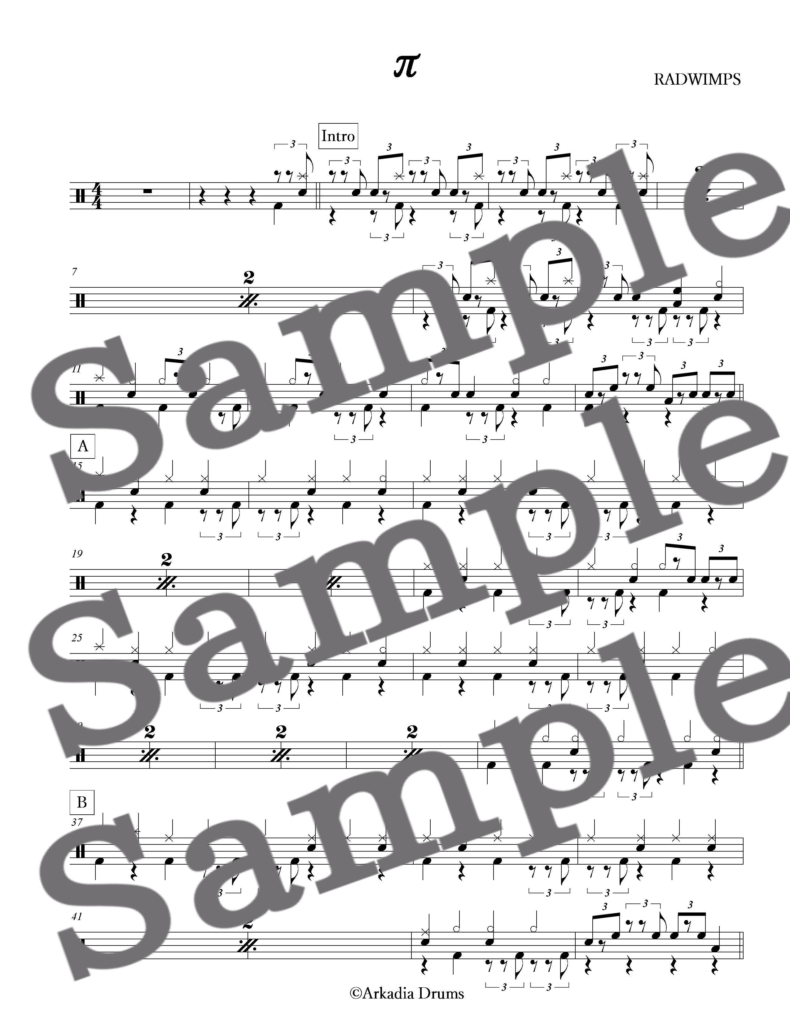 π(RADWIMPS)のドラム楽譜です。