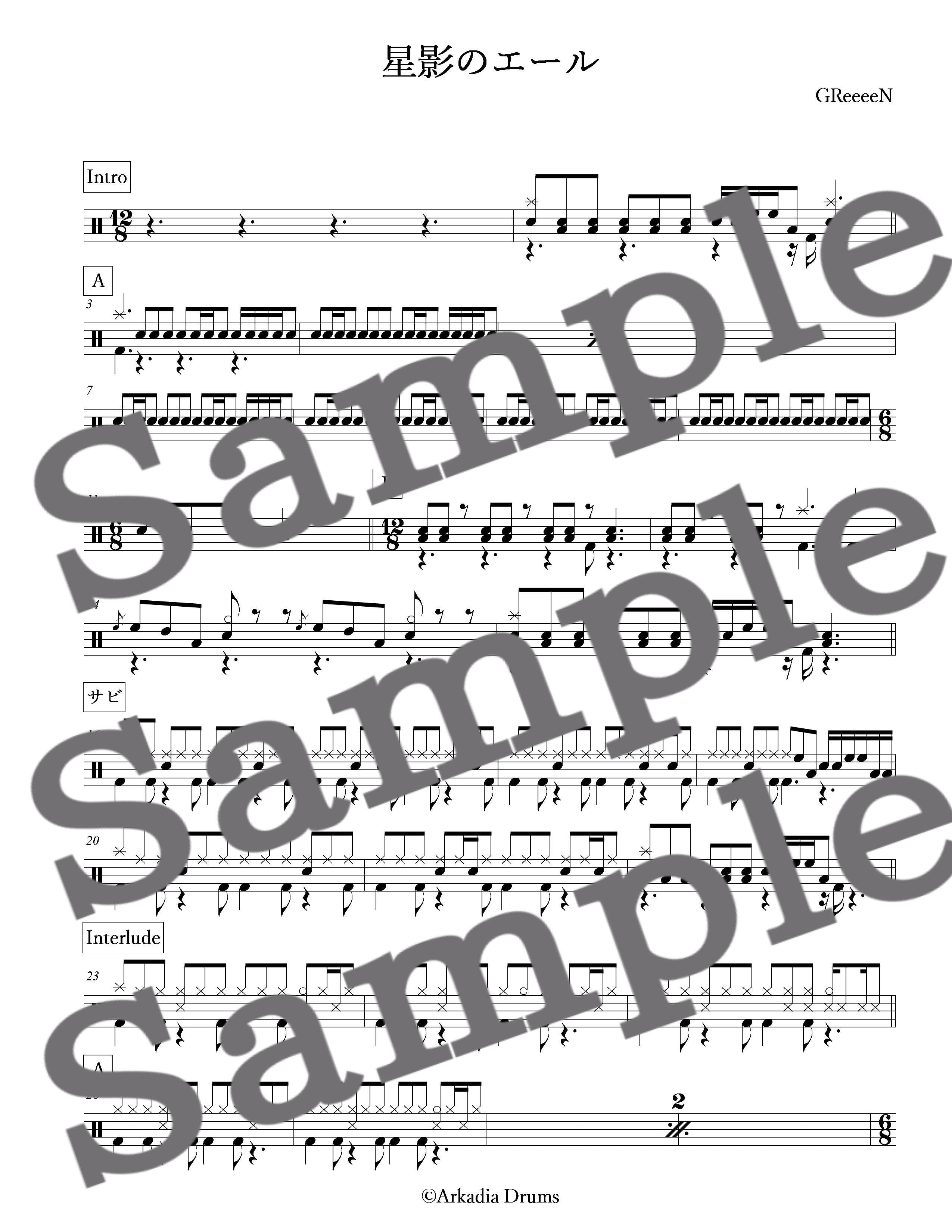 星影のエール(GReeeeN)のドラム楽譜です。
