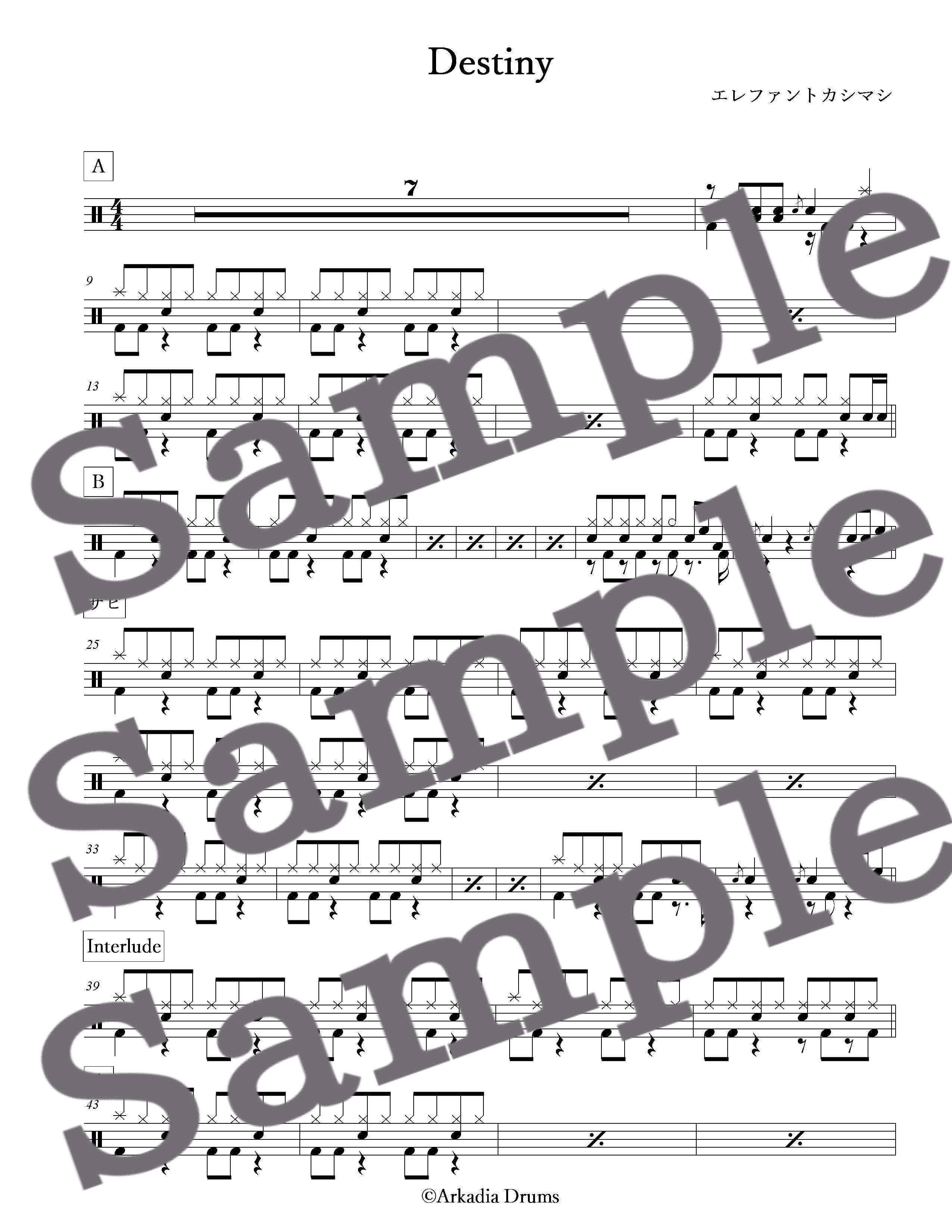 Destiny(エレファントカシマシ)のドラム楽譜です。