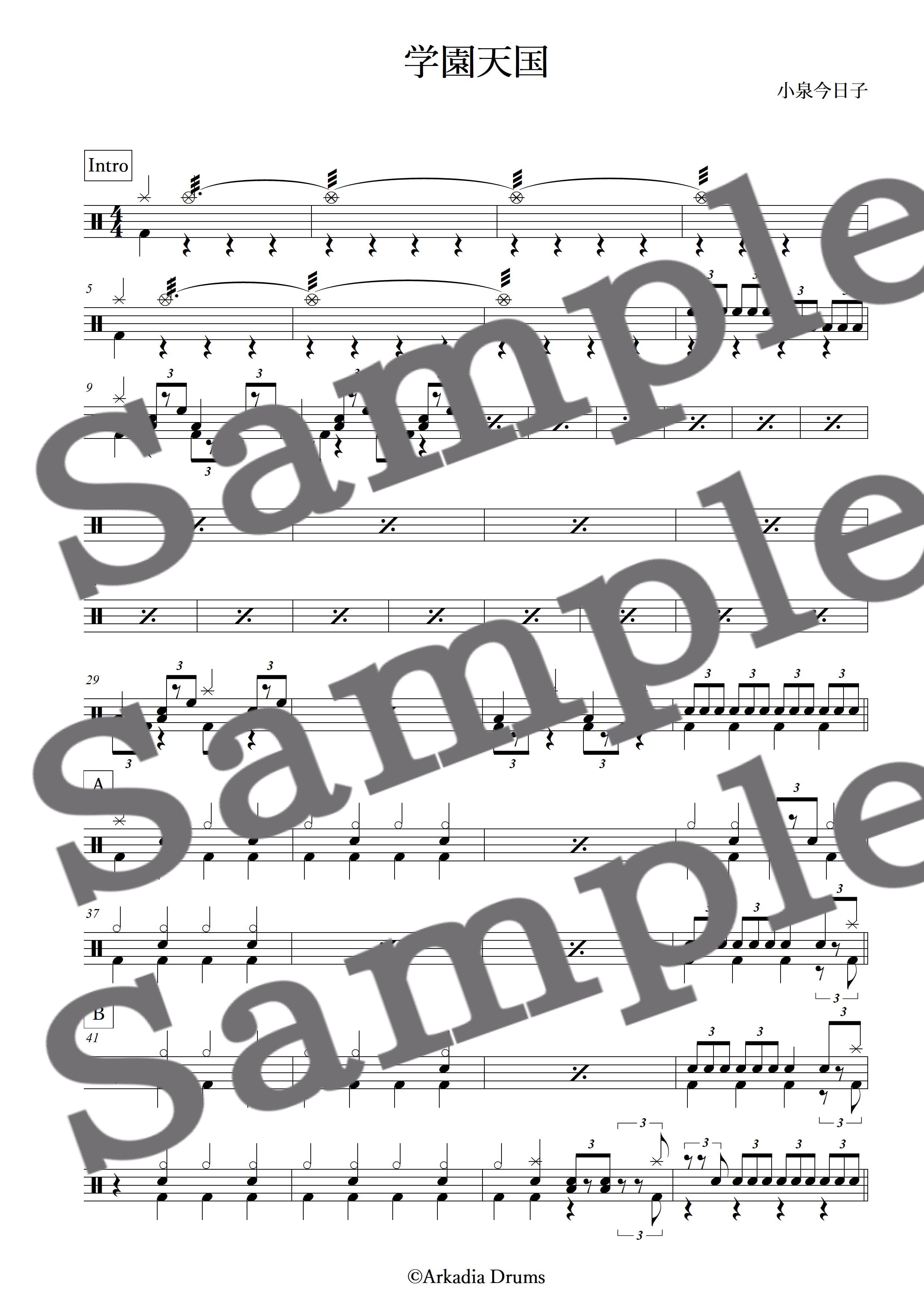 学園天国(小泉今日子)のドラム楽譜です。