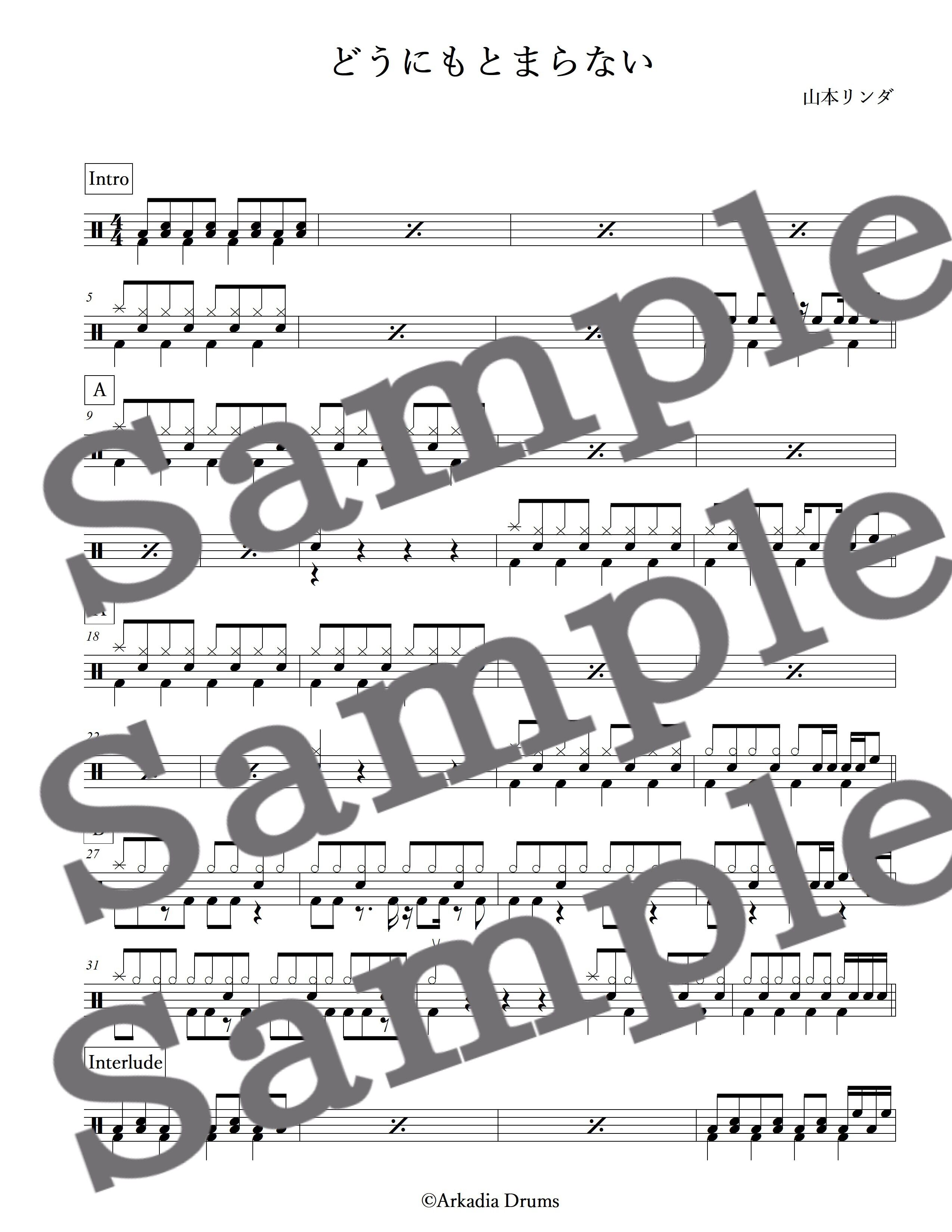 どうにもとまらない(山本リンダ)のドラム楽譜です。