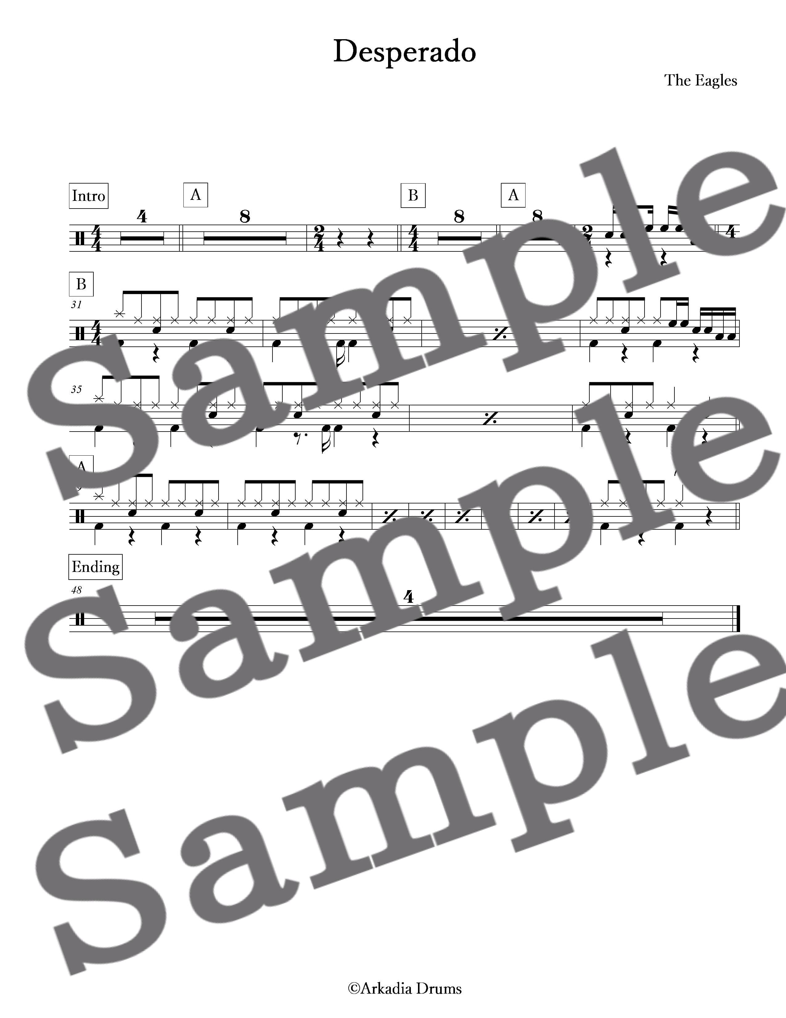 ドラムのみの楽譜であること、また大きめのセクションマークを配置しているので、演奏中でも迷いにくいのが特徴です。