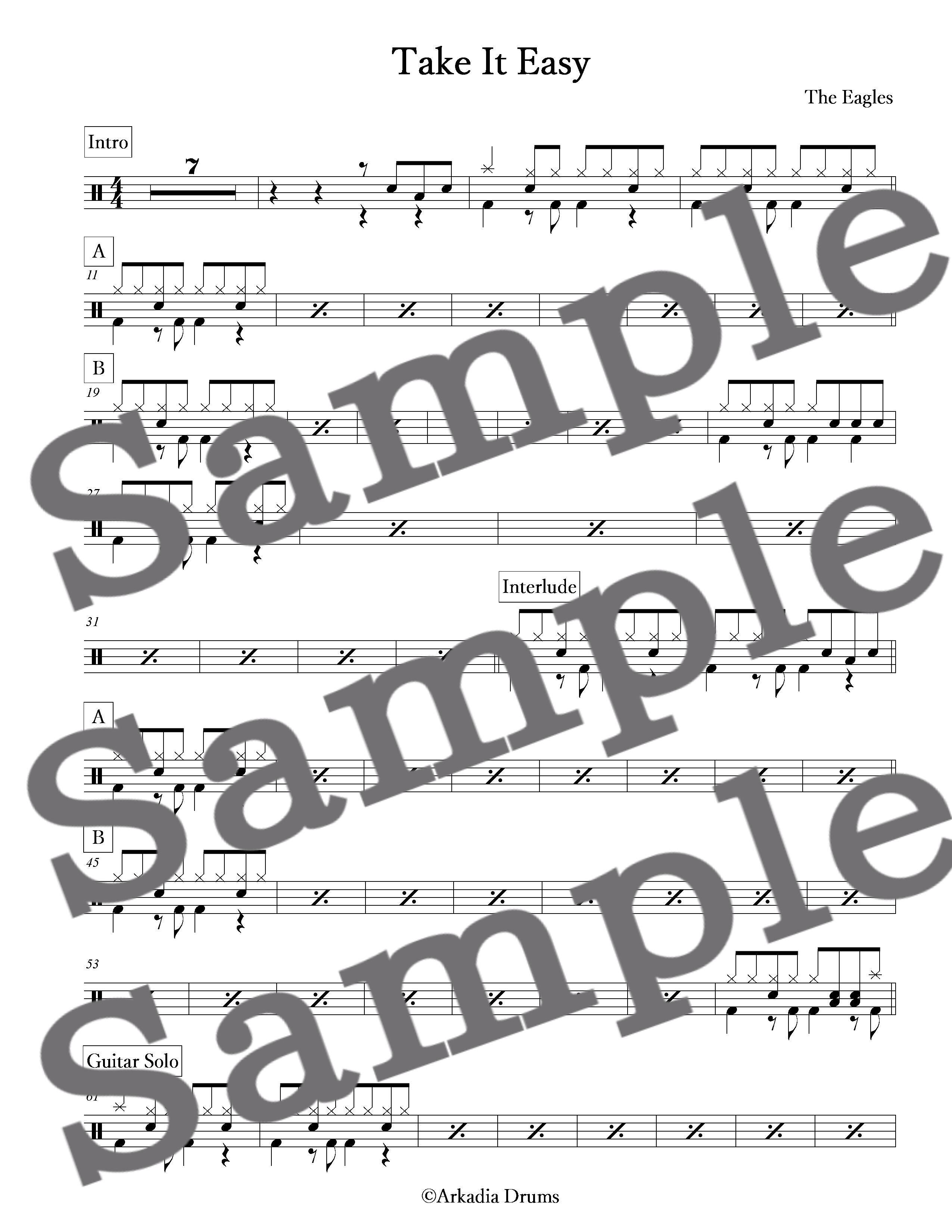 ドラムのみの楽譜であること、また大きめのセクションマークを配置しているので、演奏中でも迷いにくいのが特徴です。