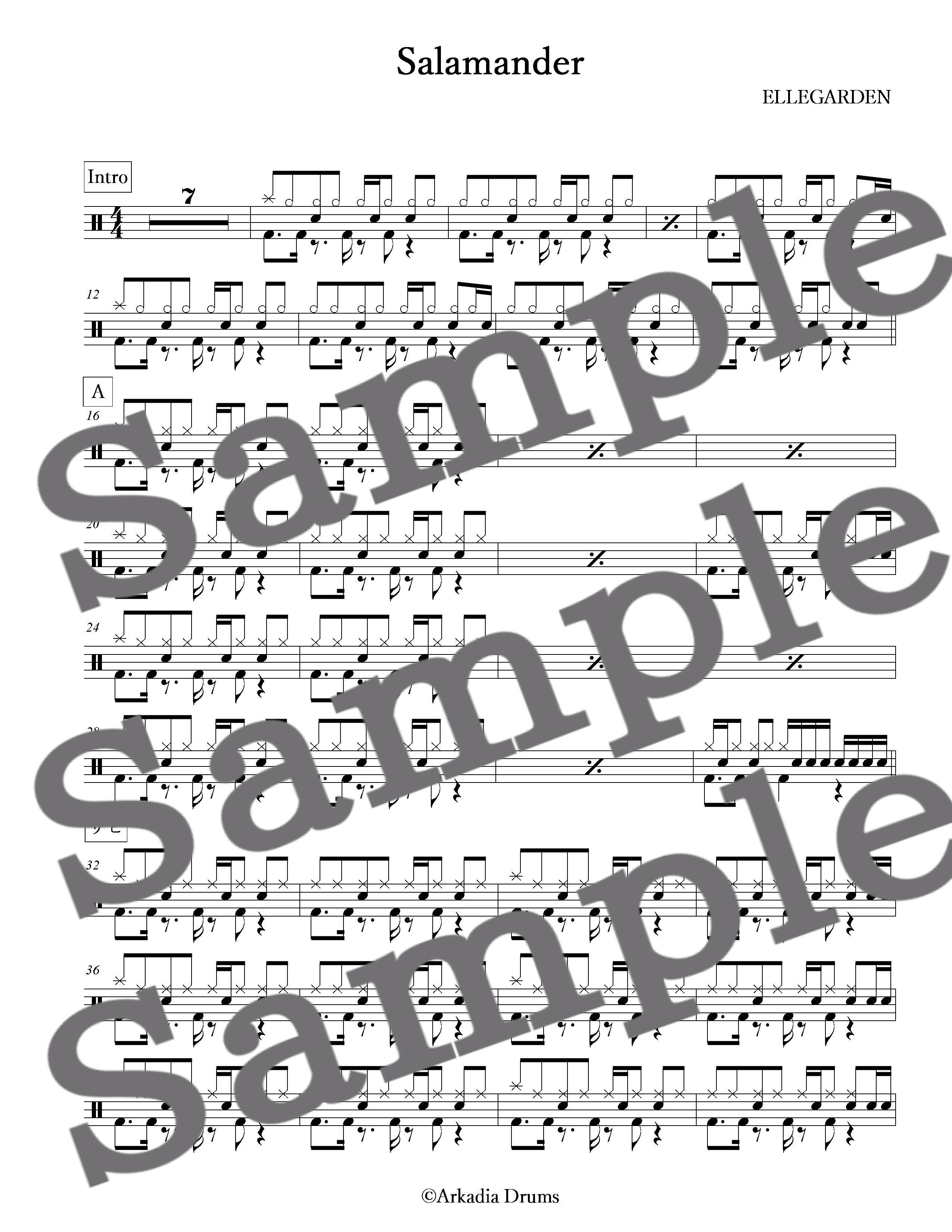 Salamander(ELLEGARDEN)のドラム楽譜です。