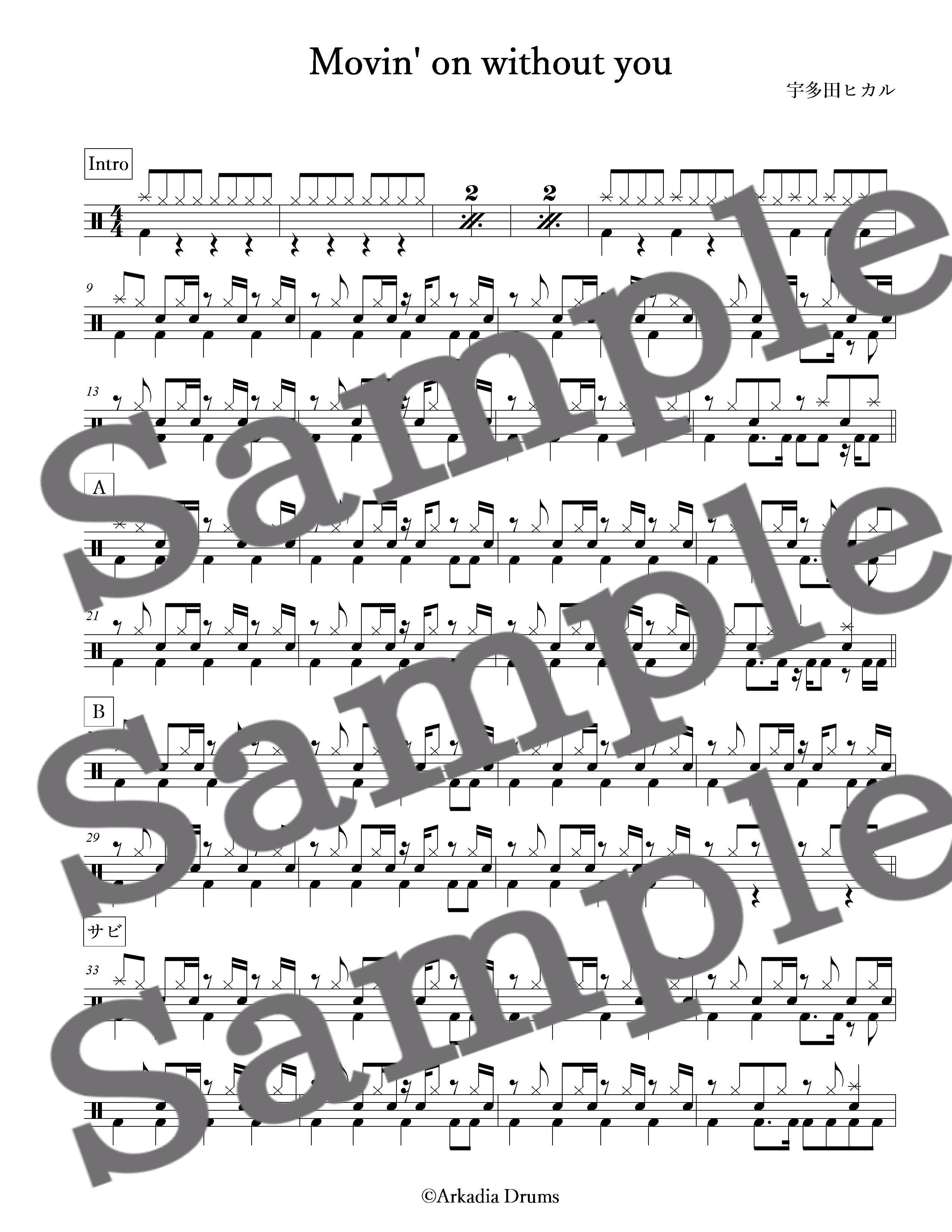 Movin' on without you(宇多田ヒカル)のドラム楽譜です。