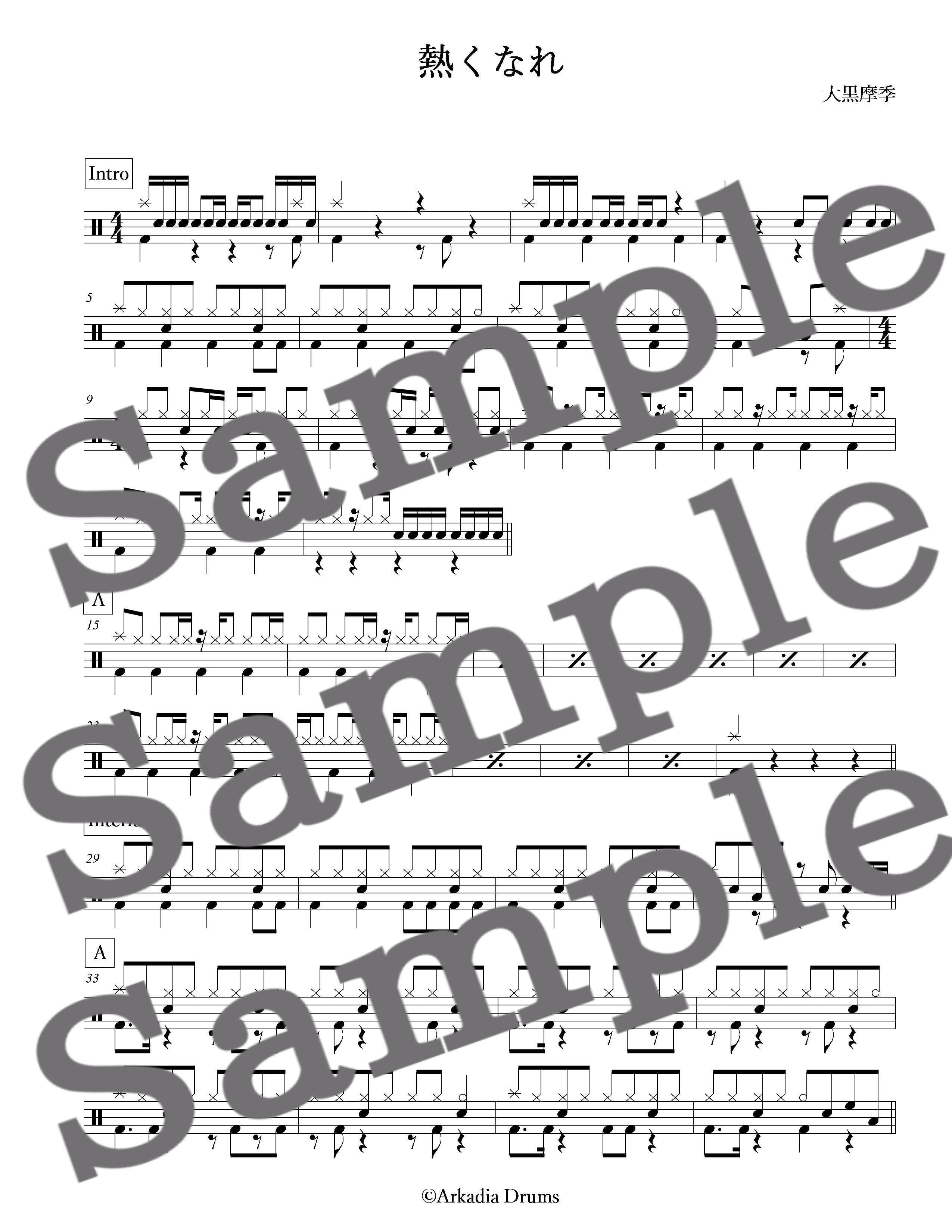 熱くなれ(大黒摩季)のドラム楽譜です。