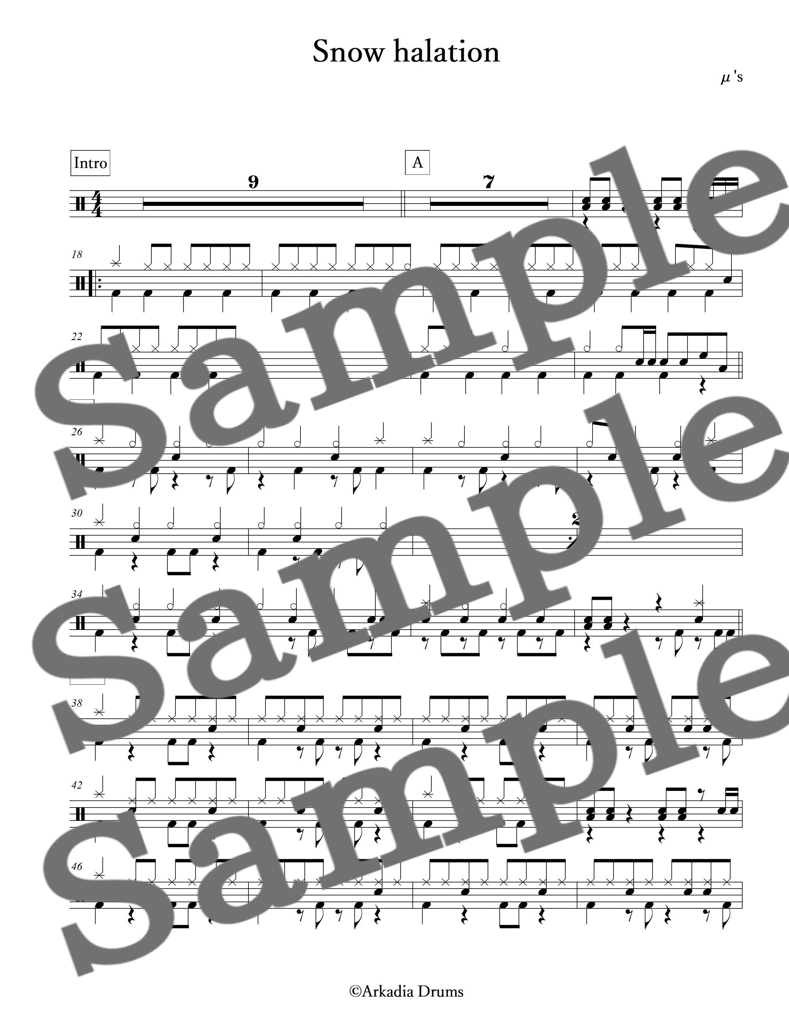 Snow halation(μ's)のドラム楽譜です。