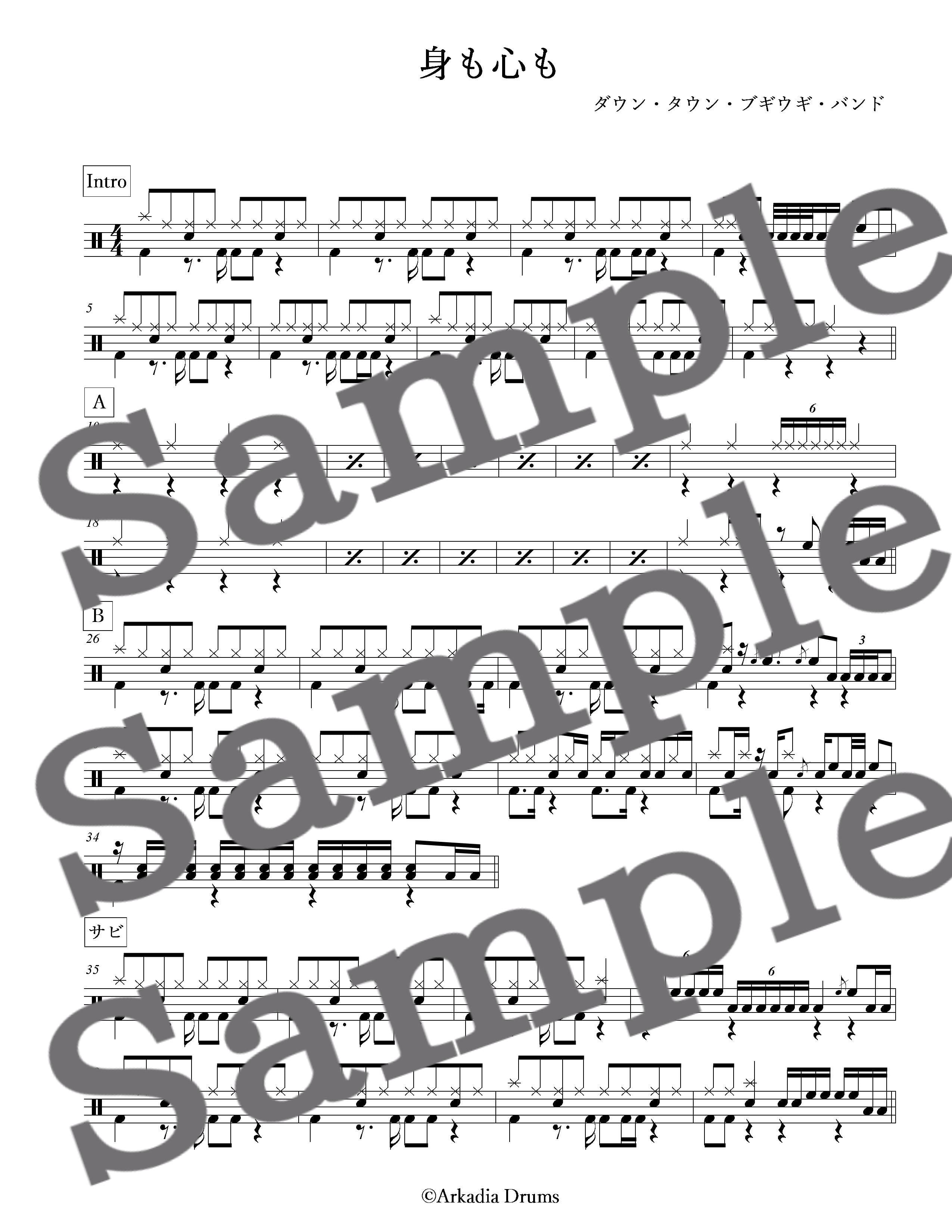 身も心も(ダウン・タウン・ブギウギ・バンド)のドラム楽譜です。