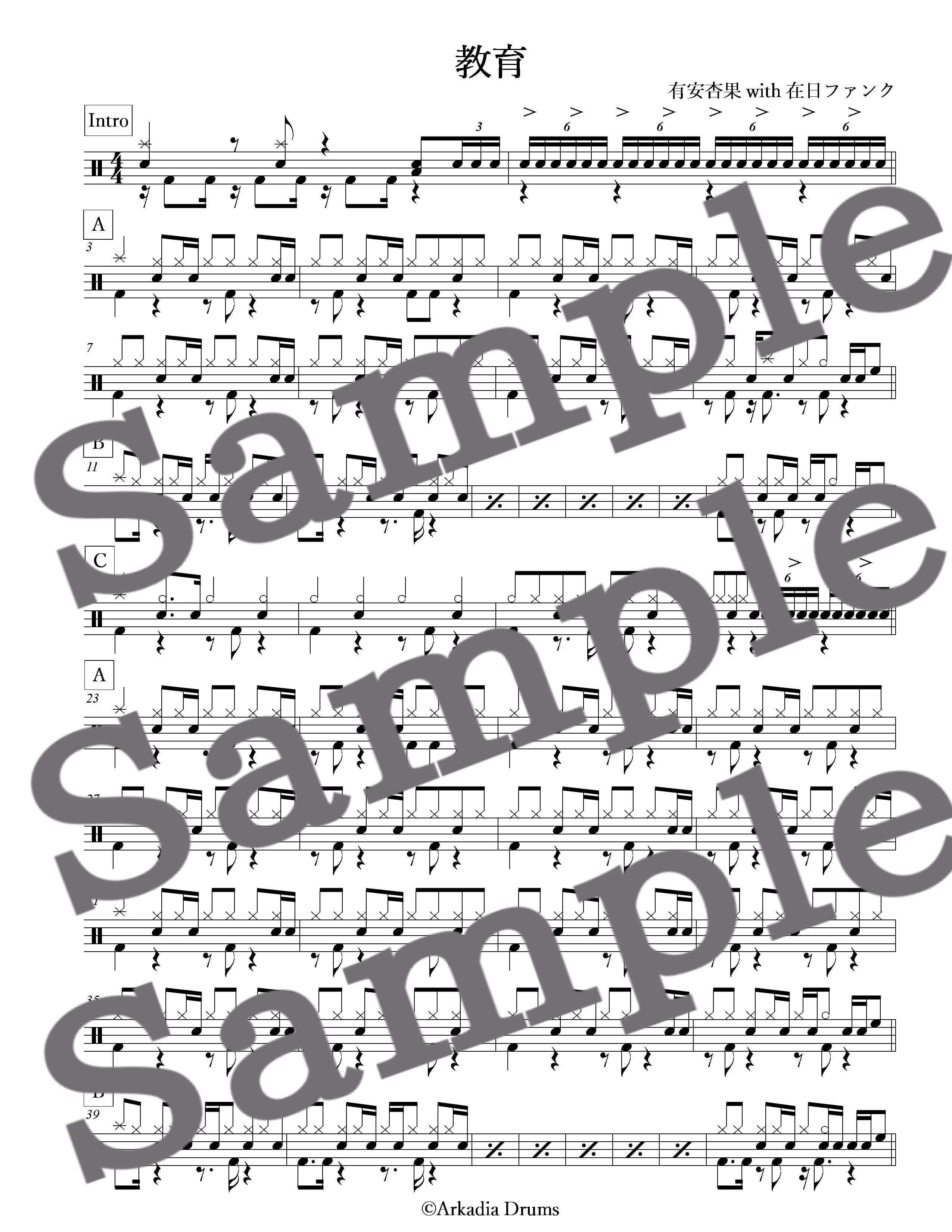 教育(有安杏果 with 在日ファンク)のドラム楽譜です。