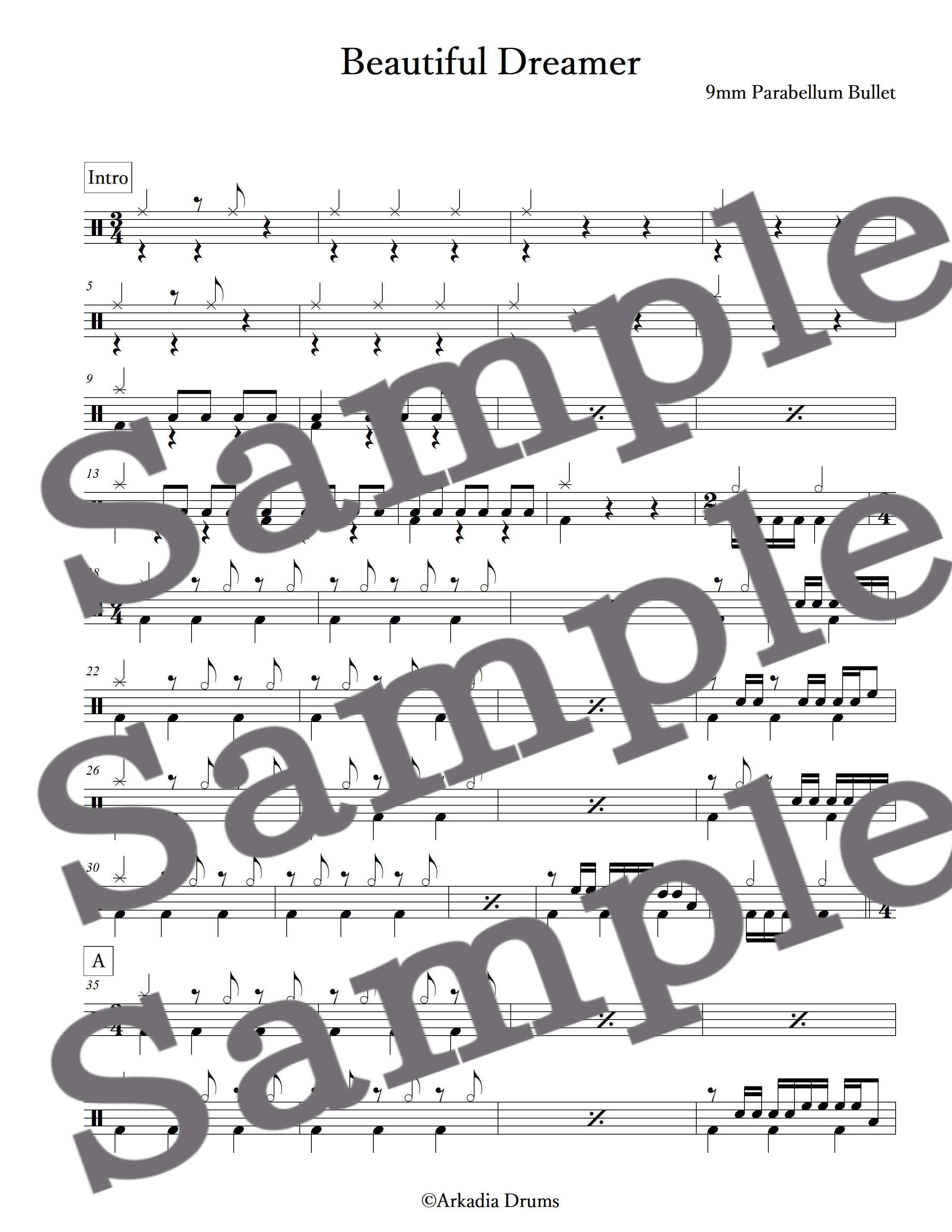 Beautiful Dreamer(9mm Parabellum Bullet)のドラム楽譜です。