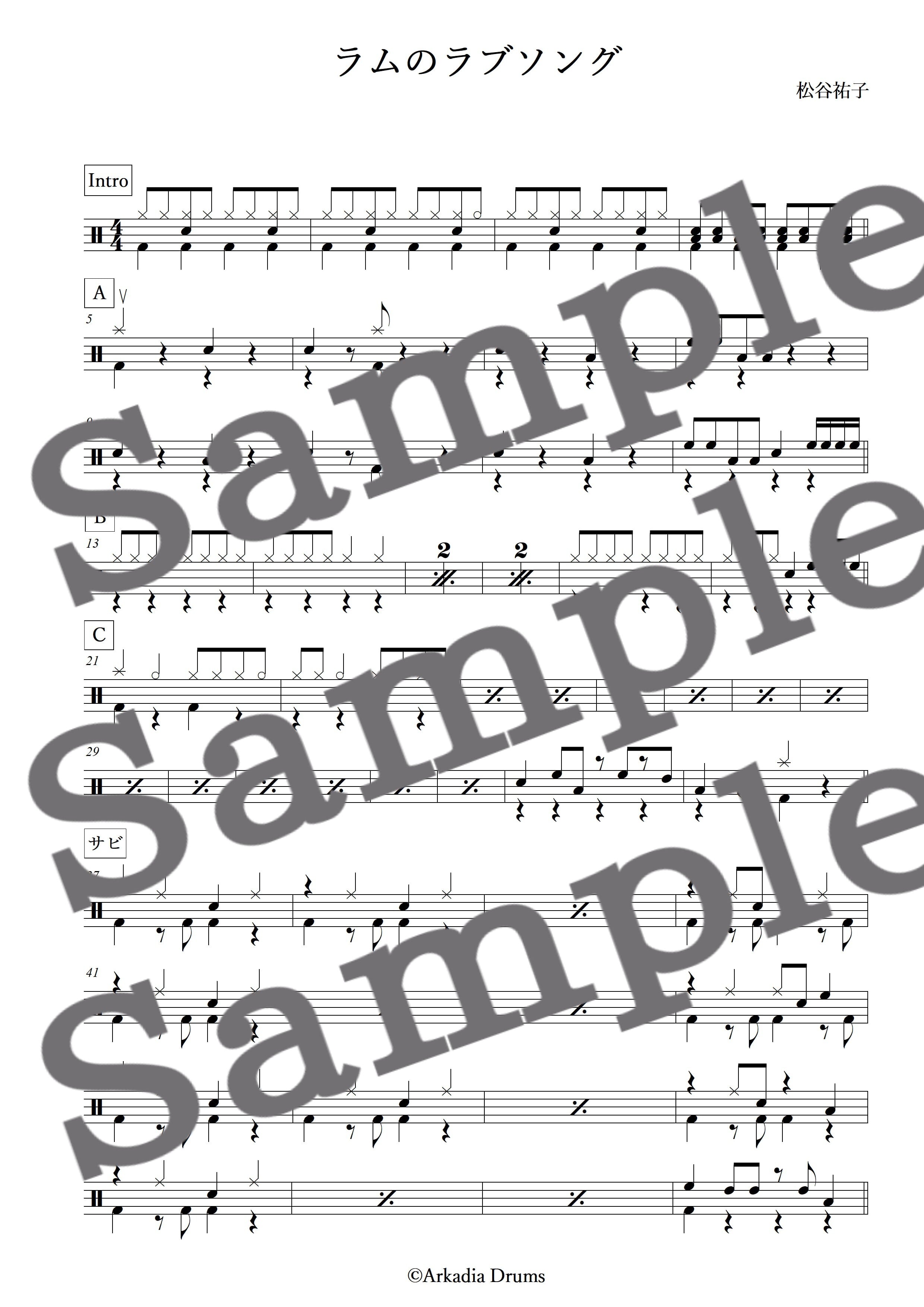 ラムのラブソング(松谷祐子)のドラム楽譜です。