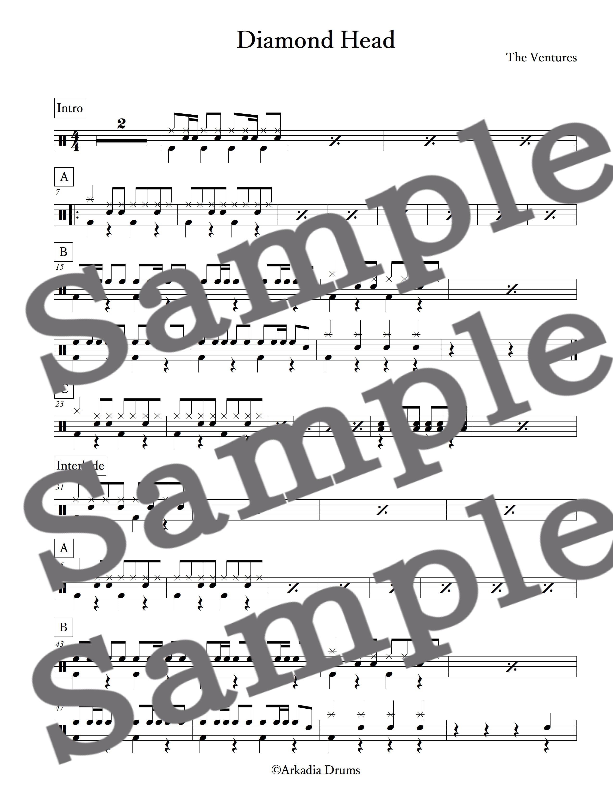 ドラムのみの楽譜であること、また大きめのセクションマークを配置しているので、演奏中でも迷いにくいのが特徴です。