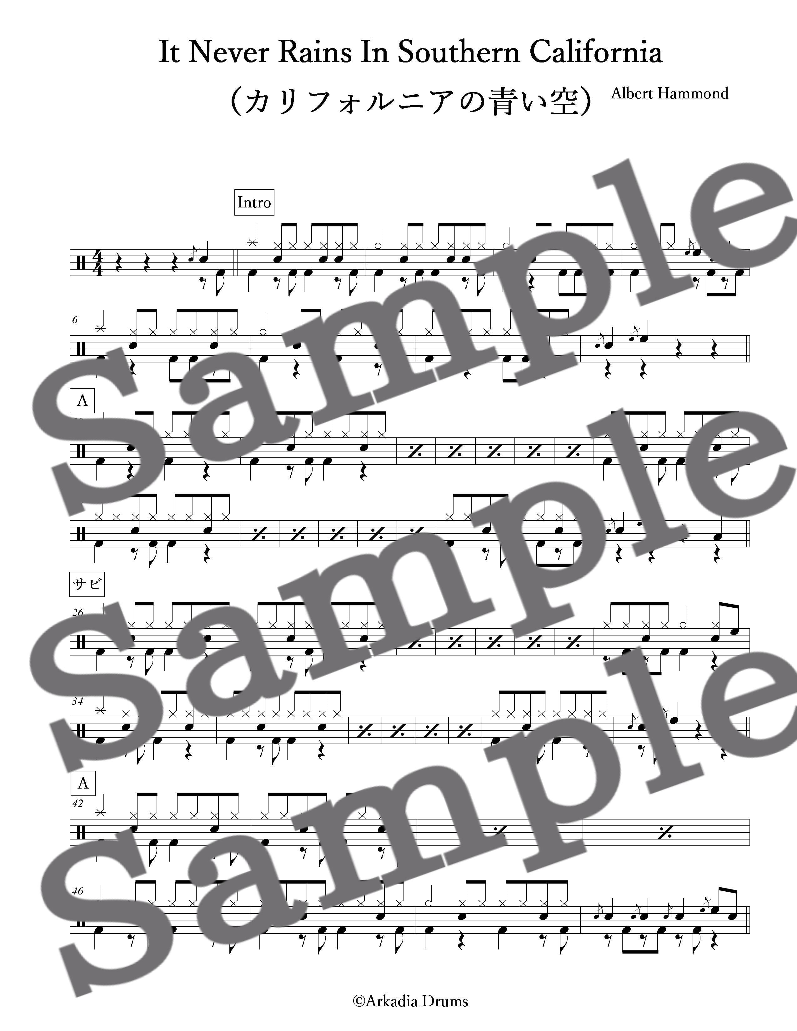 It Never Rains In Southern California(カリフォルニアの青い空)(Albert Hammond)のドラム楽譜です。