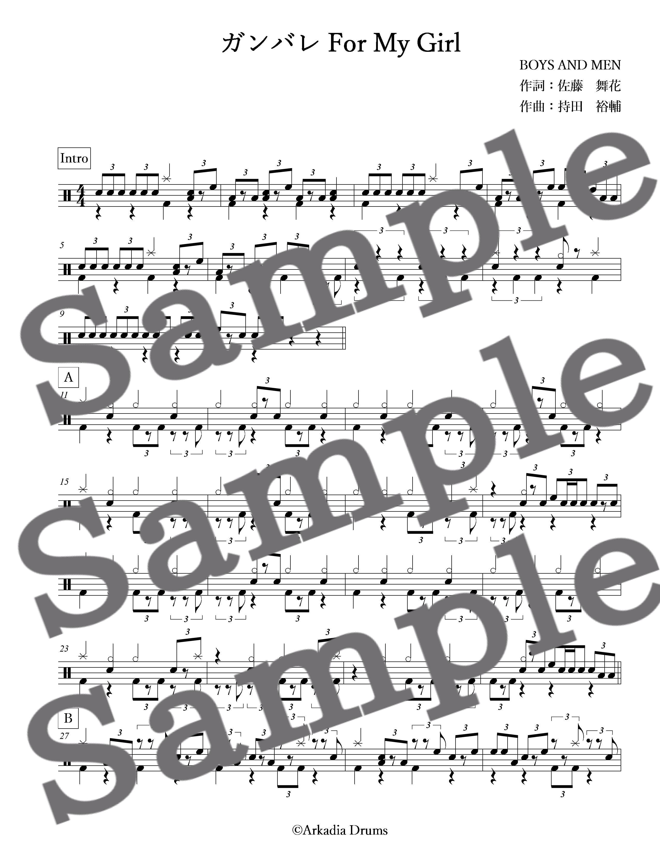 ガンバレ For My Girl(BOYS AND MEN)のドラム楽譜です。