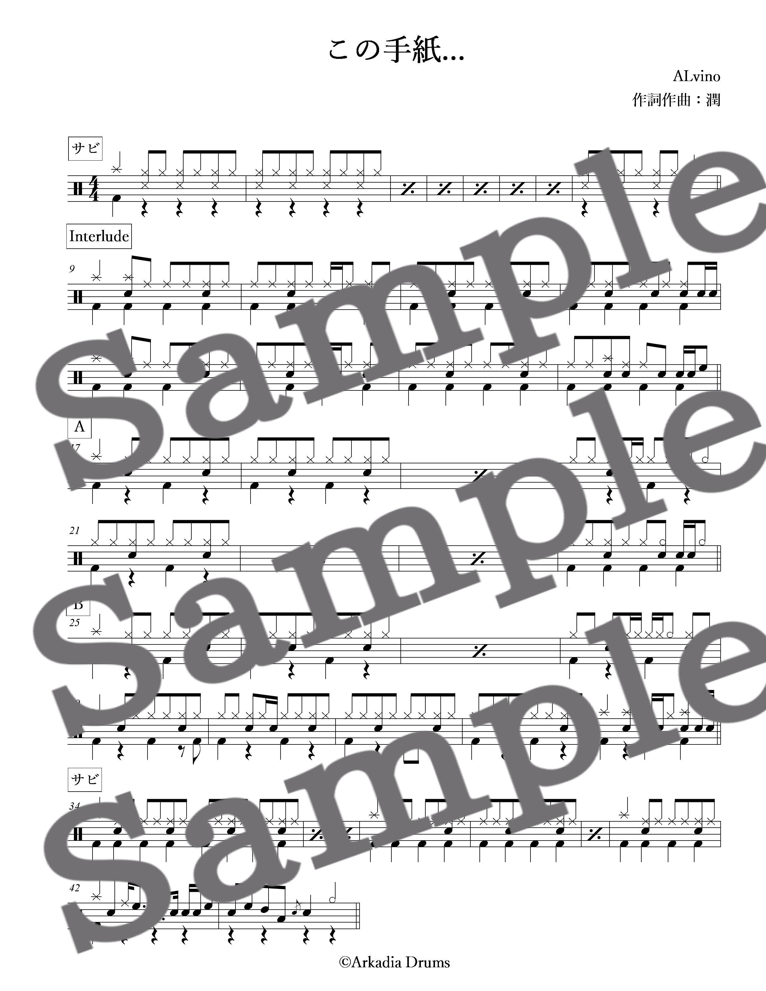 この手紙...(ALvino)のドラム楽譜です。