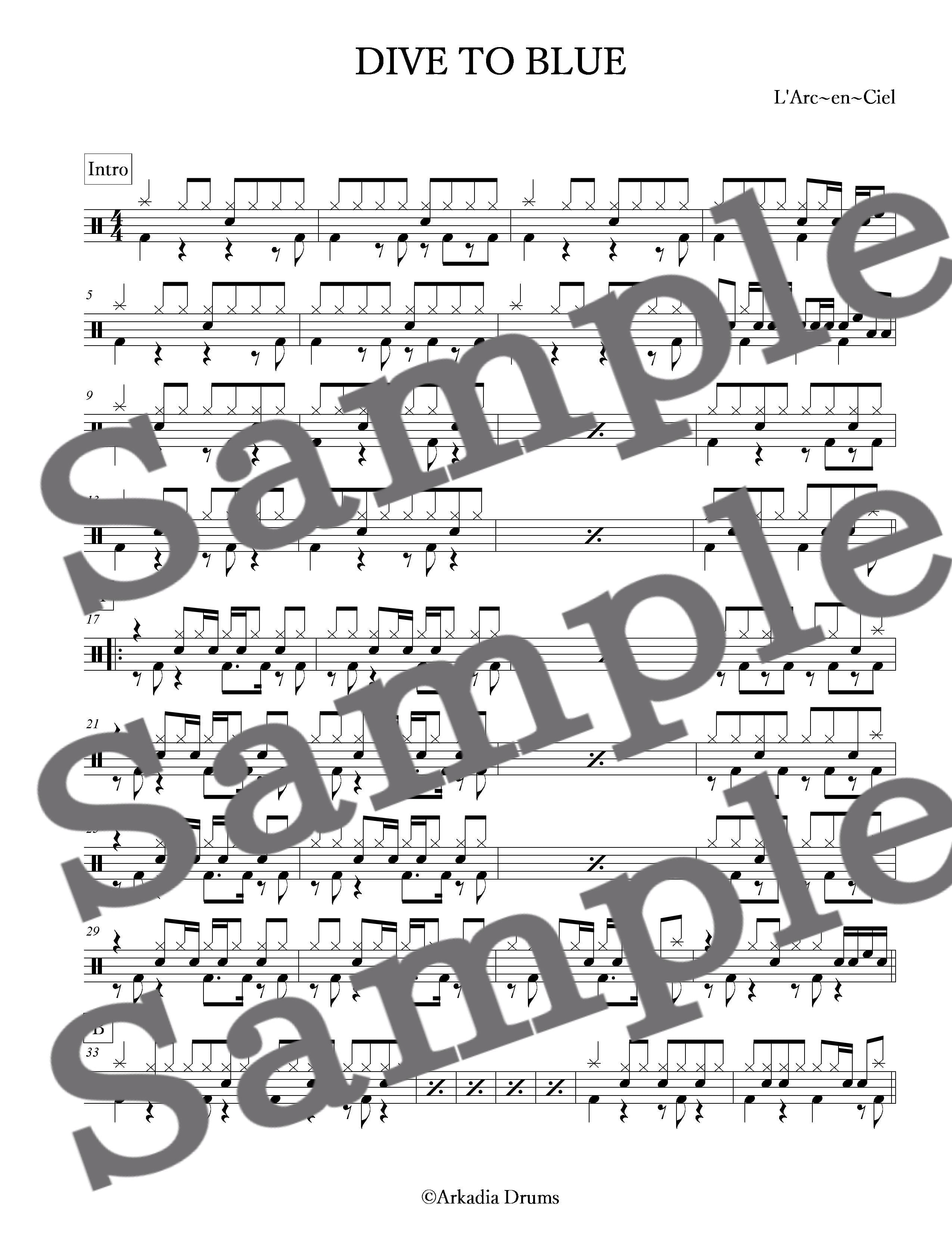 DIVE TO BLUE(L'Arc~en~Ciel)のドラム楽譜です。