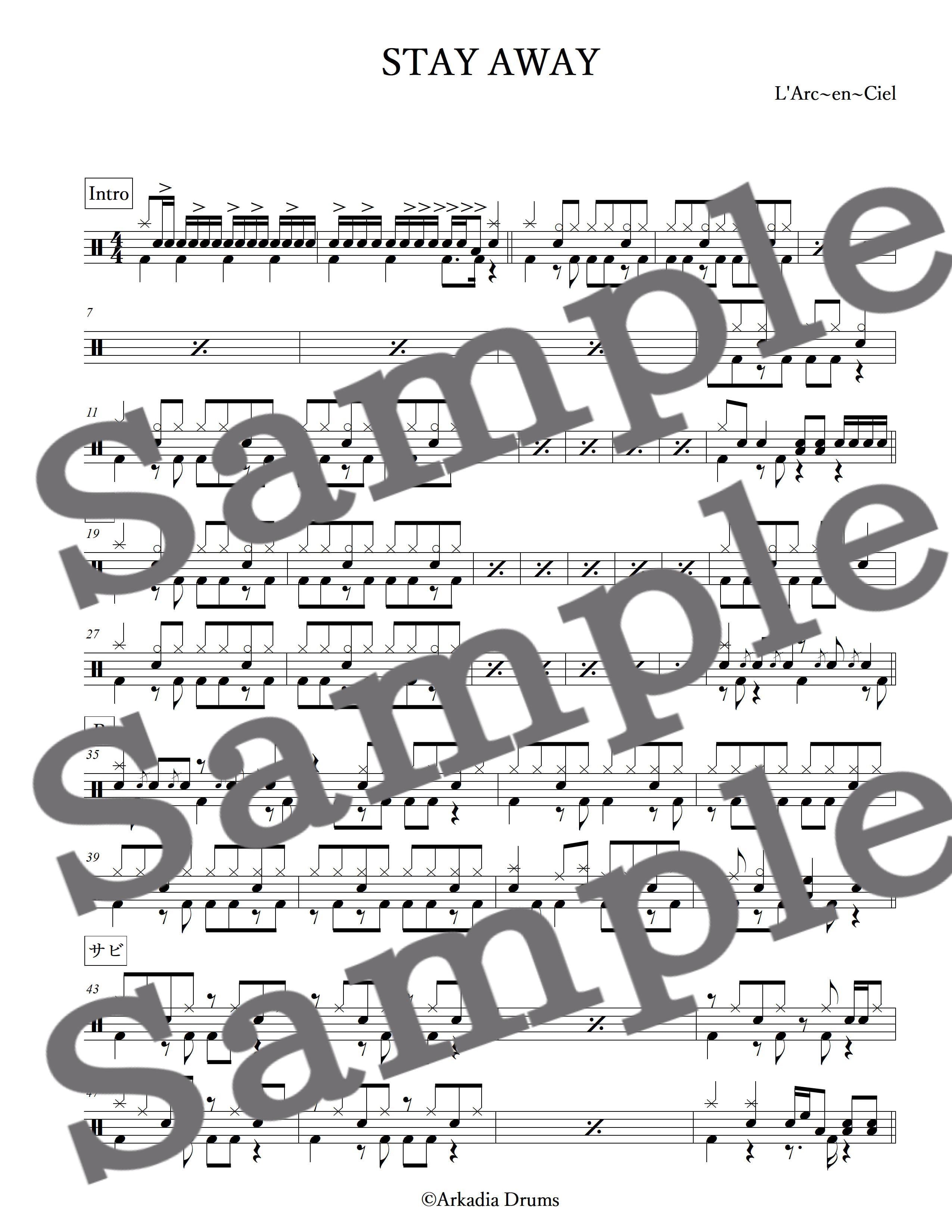 STAY AWAY(L'Arc~en~Ciel)のドラム楽譜です。