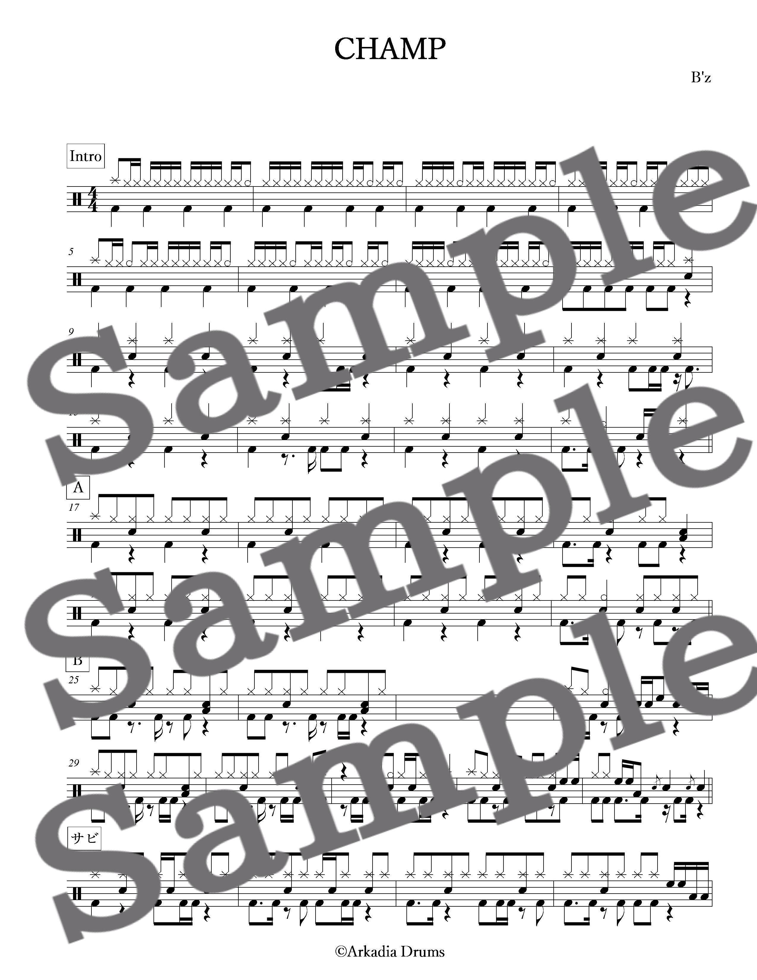 ドラムのみの楽譜であること、また大きめのセクションマークを配置しているので、演奏中でも迷いにくいのが特徴です。