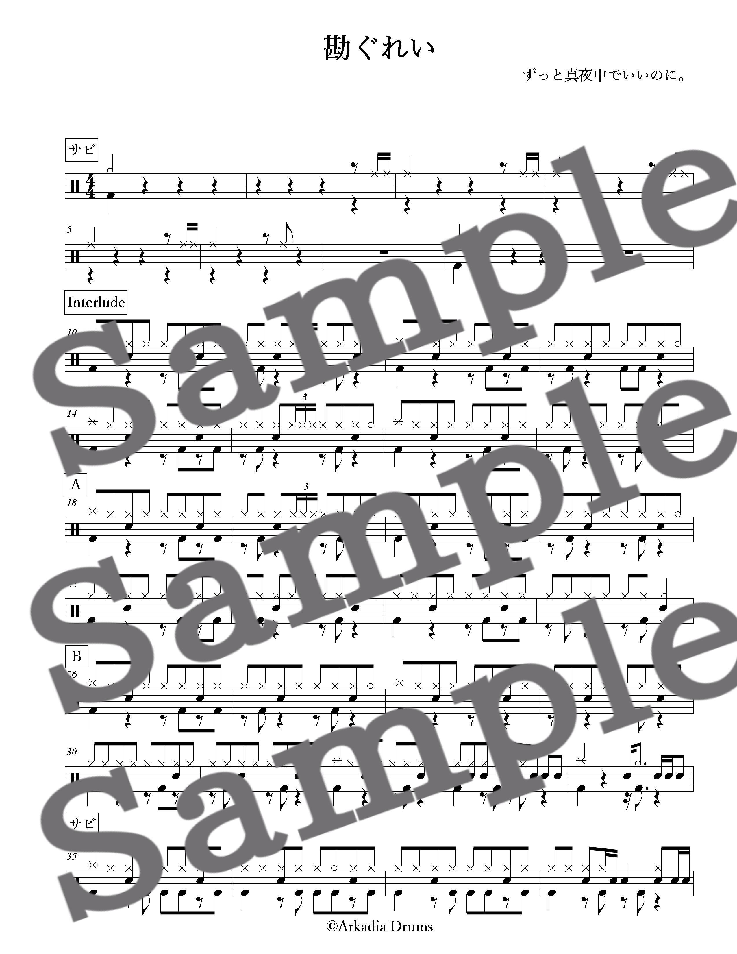 勘ぐれい(ずっと真夜中でいいのに。)のドラム楽譜です。
