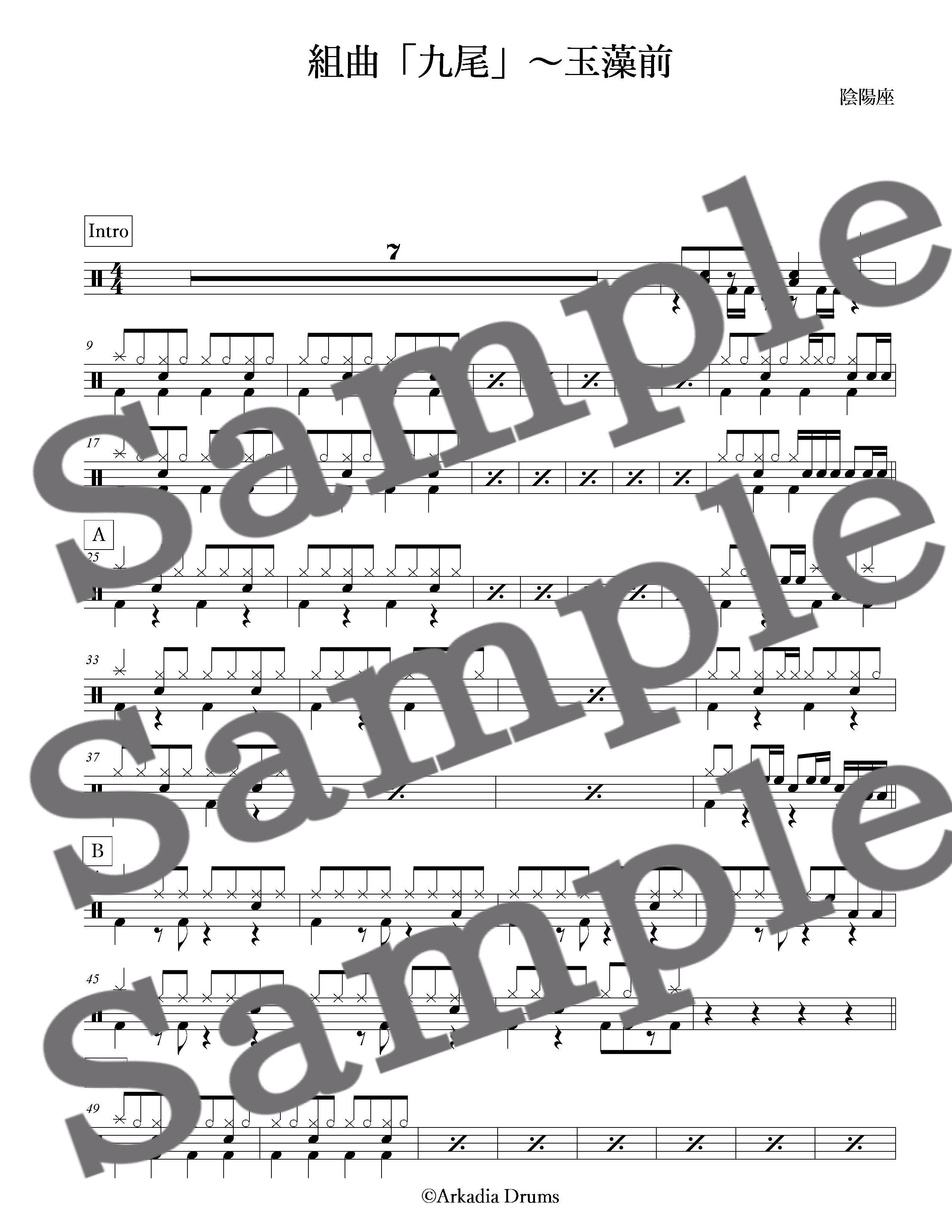 組曲「九尾」~玉藻前(陰陽座)のドラム楽譜です。
