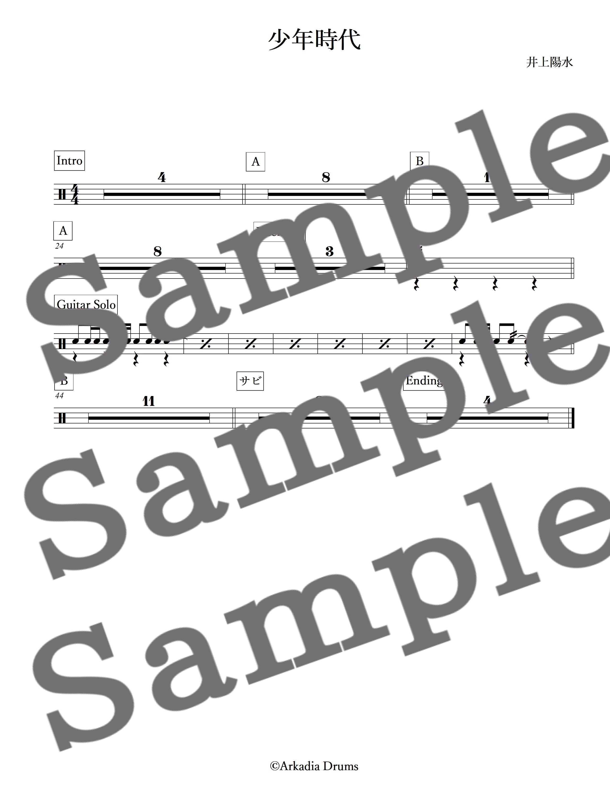 少年時代(井上陽水)のドラム楽譜です。