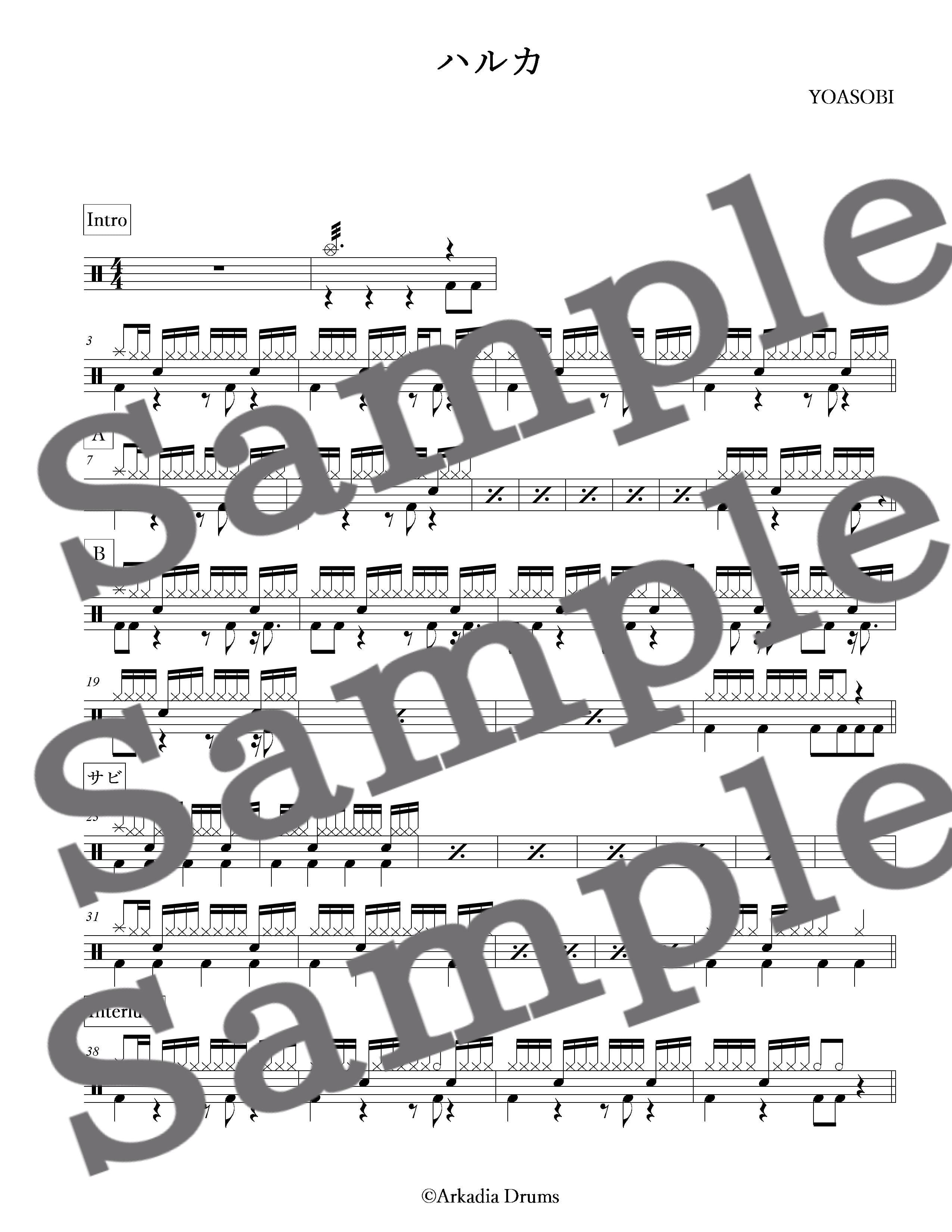 ハルカ(YOASOBI)のドラム楽譜です。