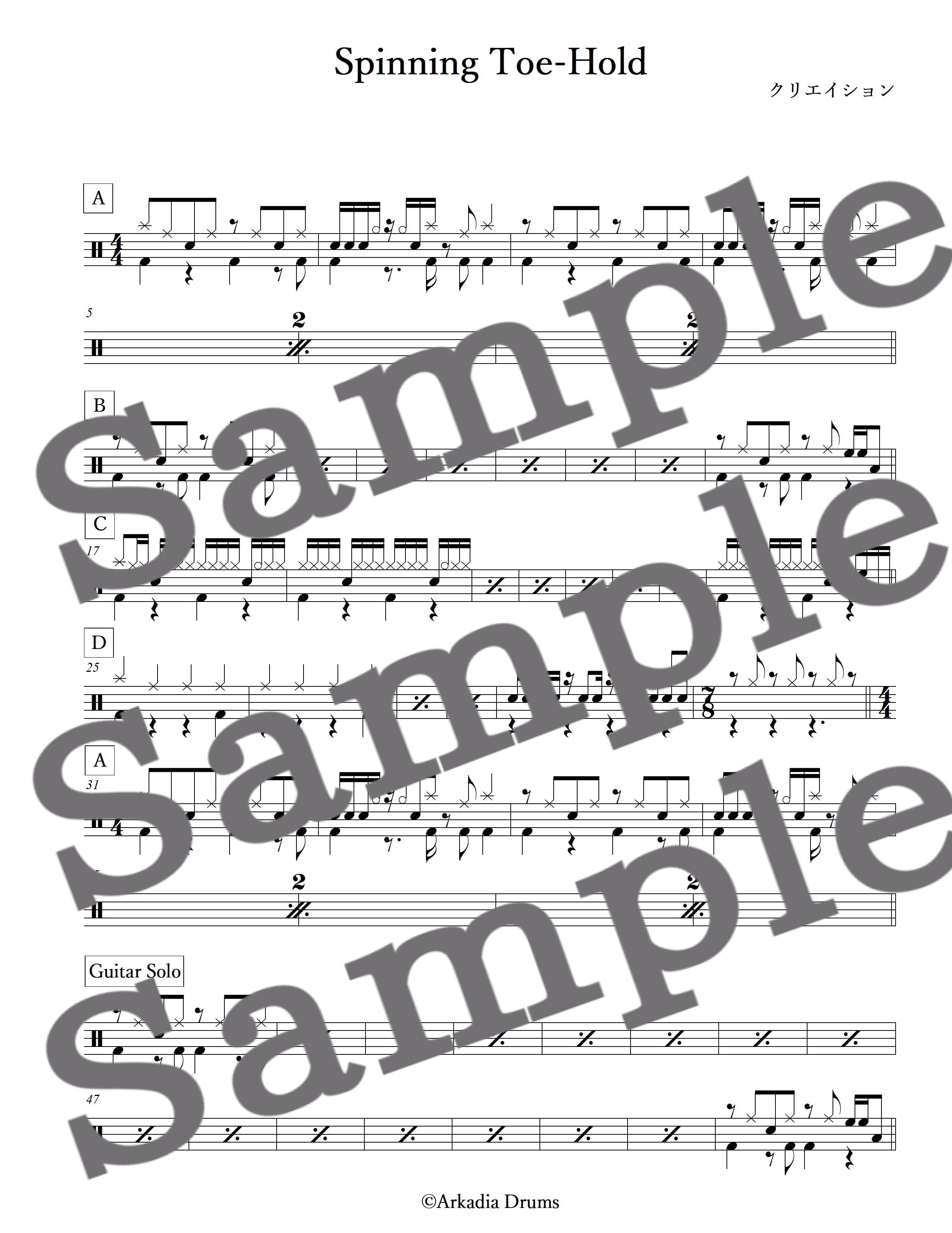 Spinning Toe-Hold(クリエイション)のドラム楽譜です。