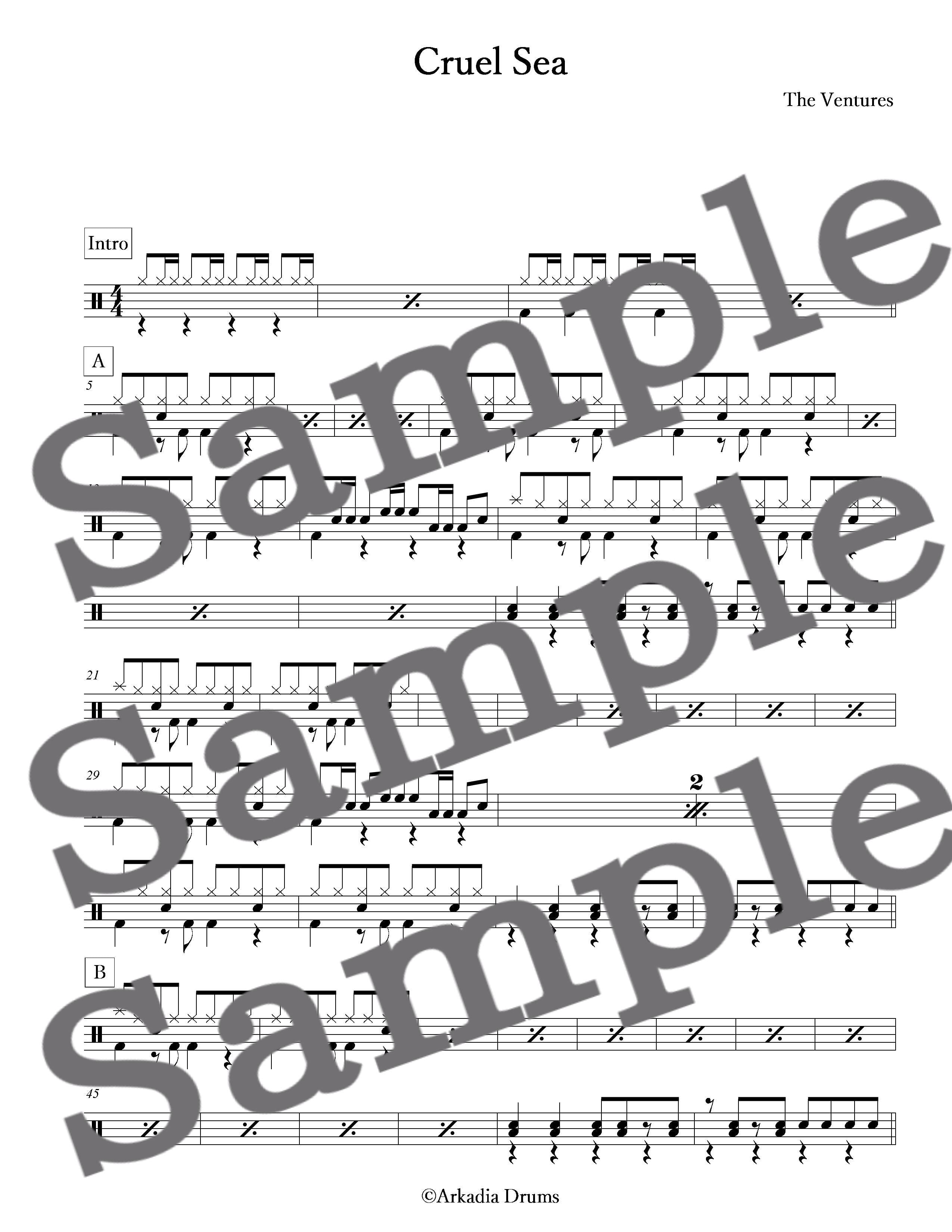 Cruel Sea(The Ventures)のドラム楽譜です。