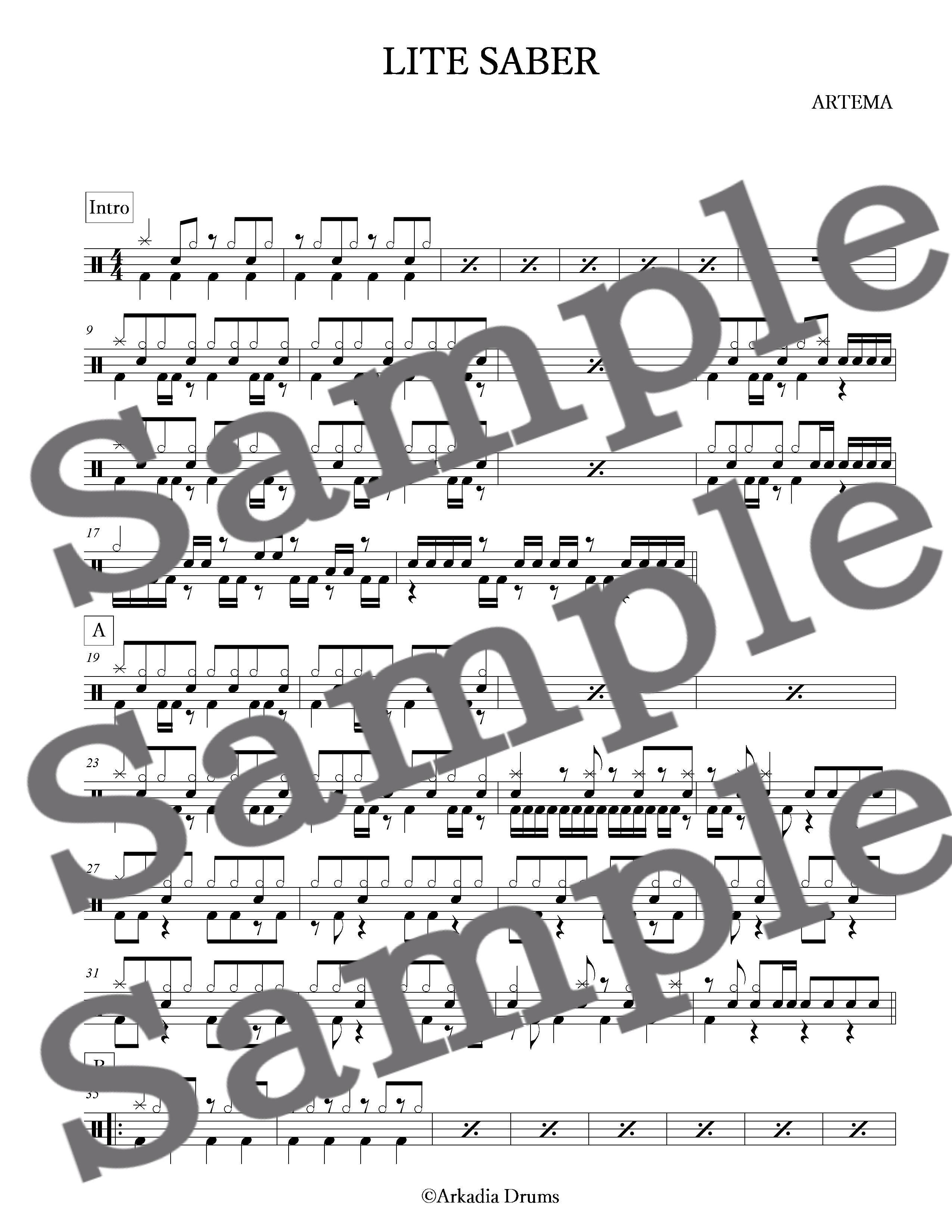 LITE SABER feat. Sushi & Kevin from Eskimo Callboy(ARTEMA)のドラム楽譜です。