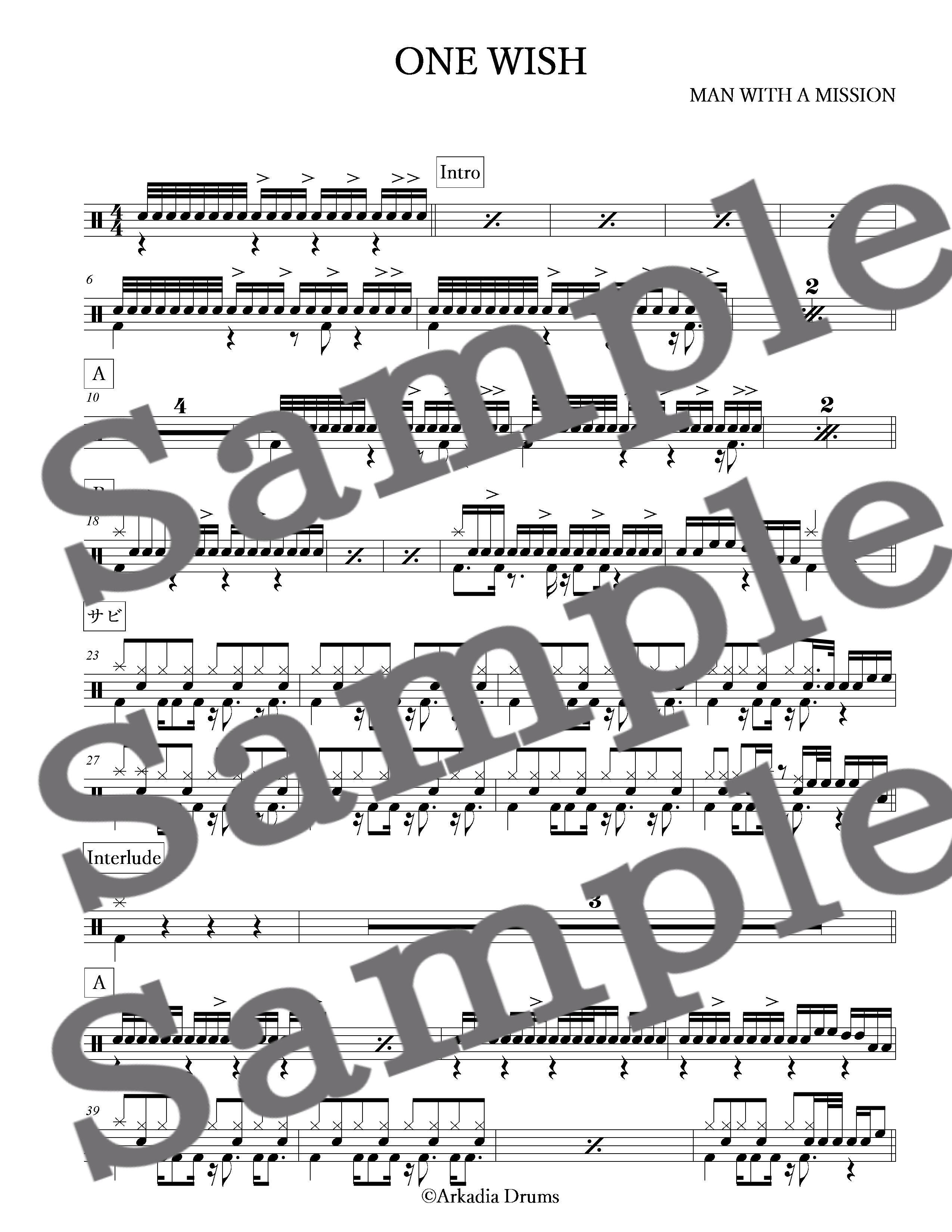 ONE WISH(MAN WITH A MISSION)のドラム楽譜です。