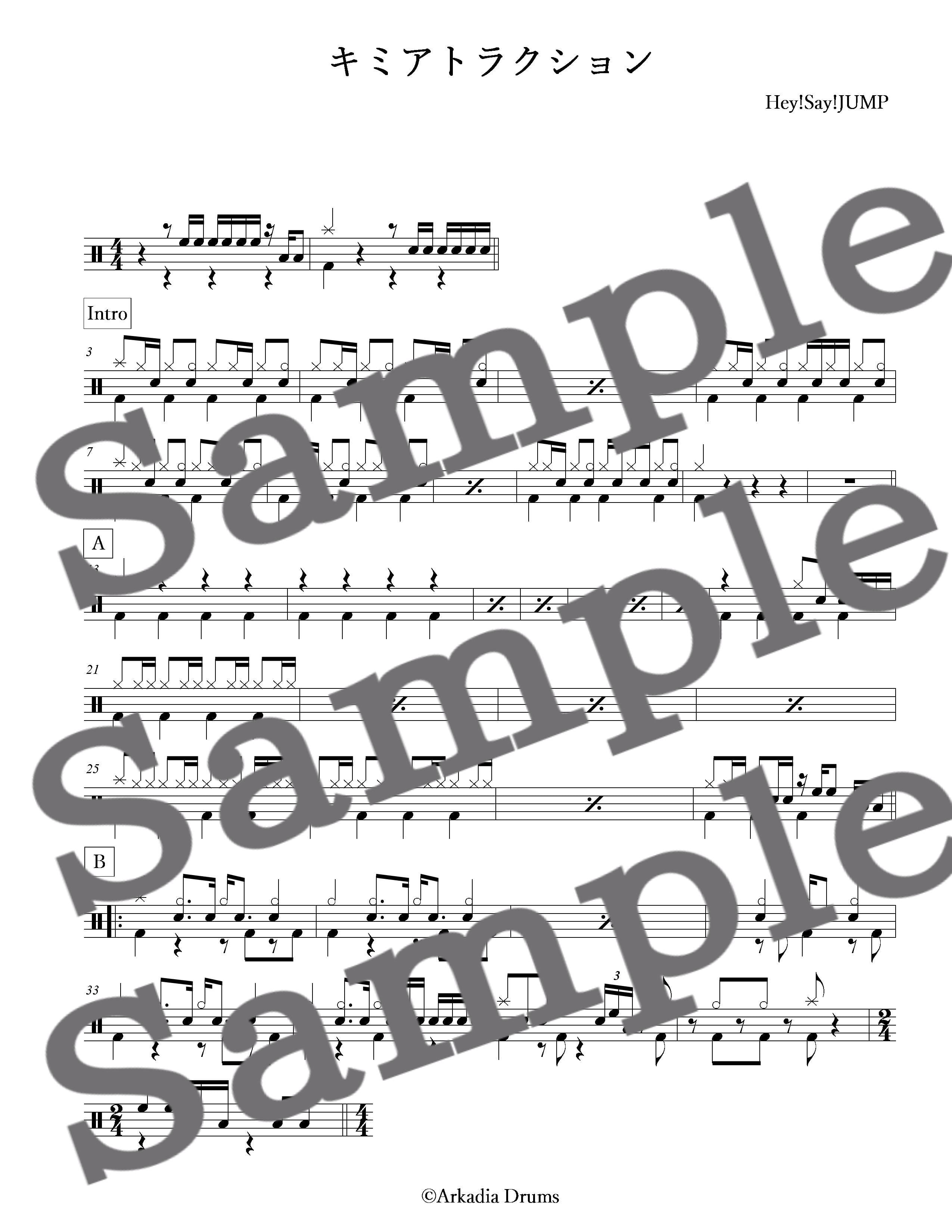 キミアトラクション(Hey! Say! JUMP)のドラム楽譜です。